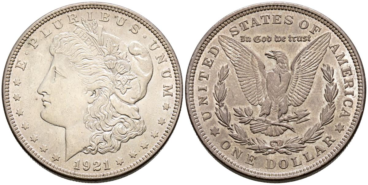 ESTADOS UNIDOS. 1 Dollar. (Ar. 26,77g/38mm). 1921. Philadelphia. (Km#110). EBC. Bonita pátina.