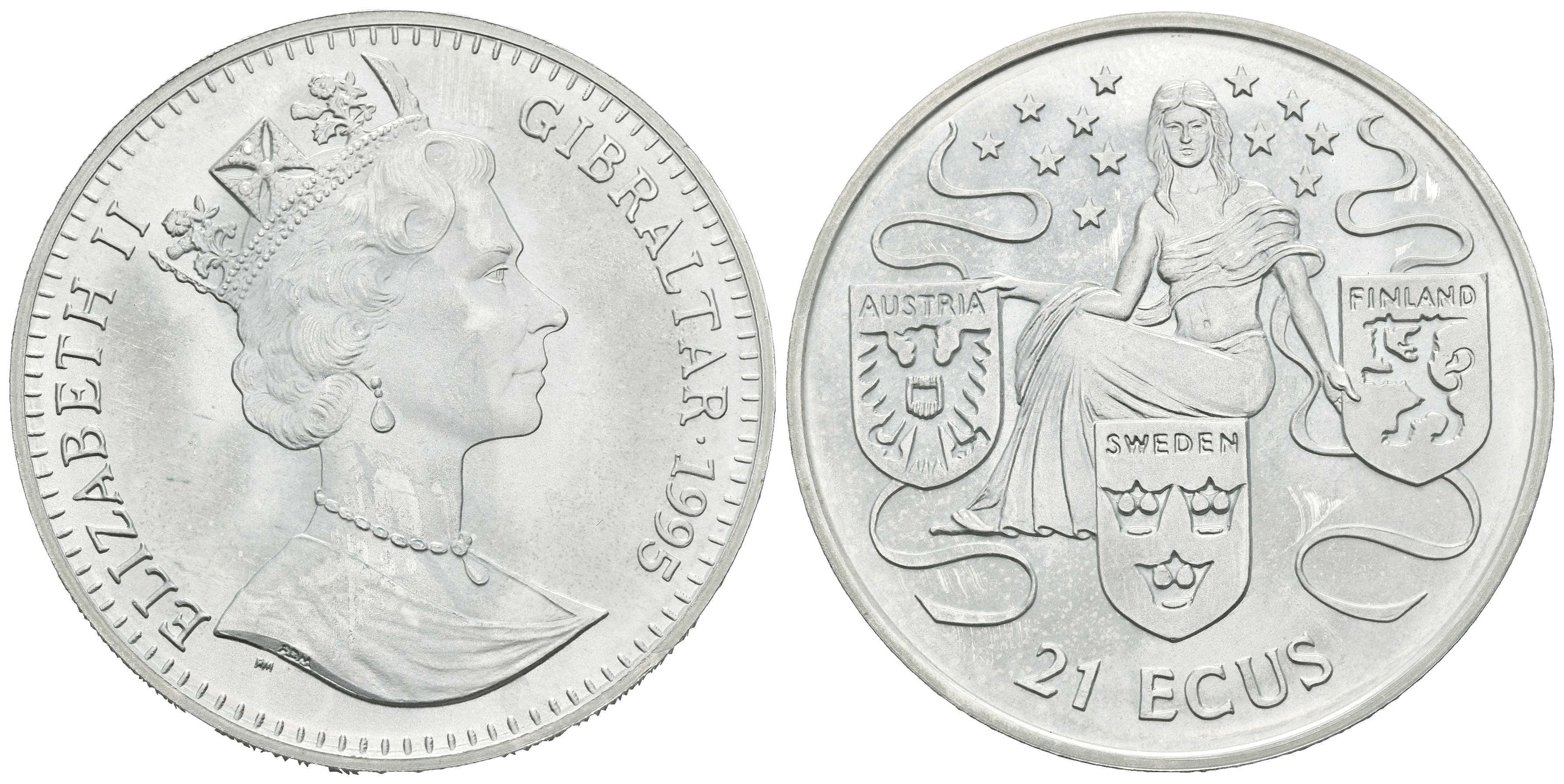 GIBRALTAR. 21 Ecu. 1995. EUROPA. Ar. 19,37g. PROOF.