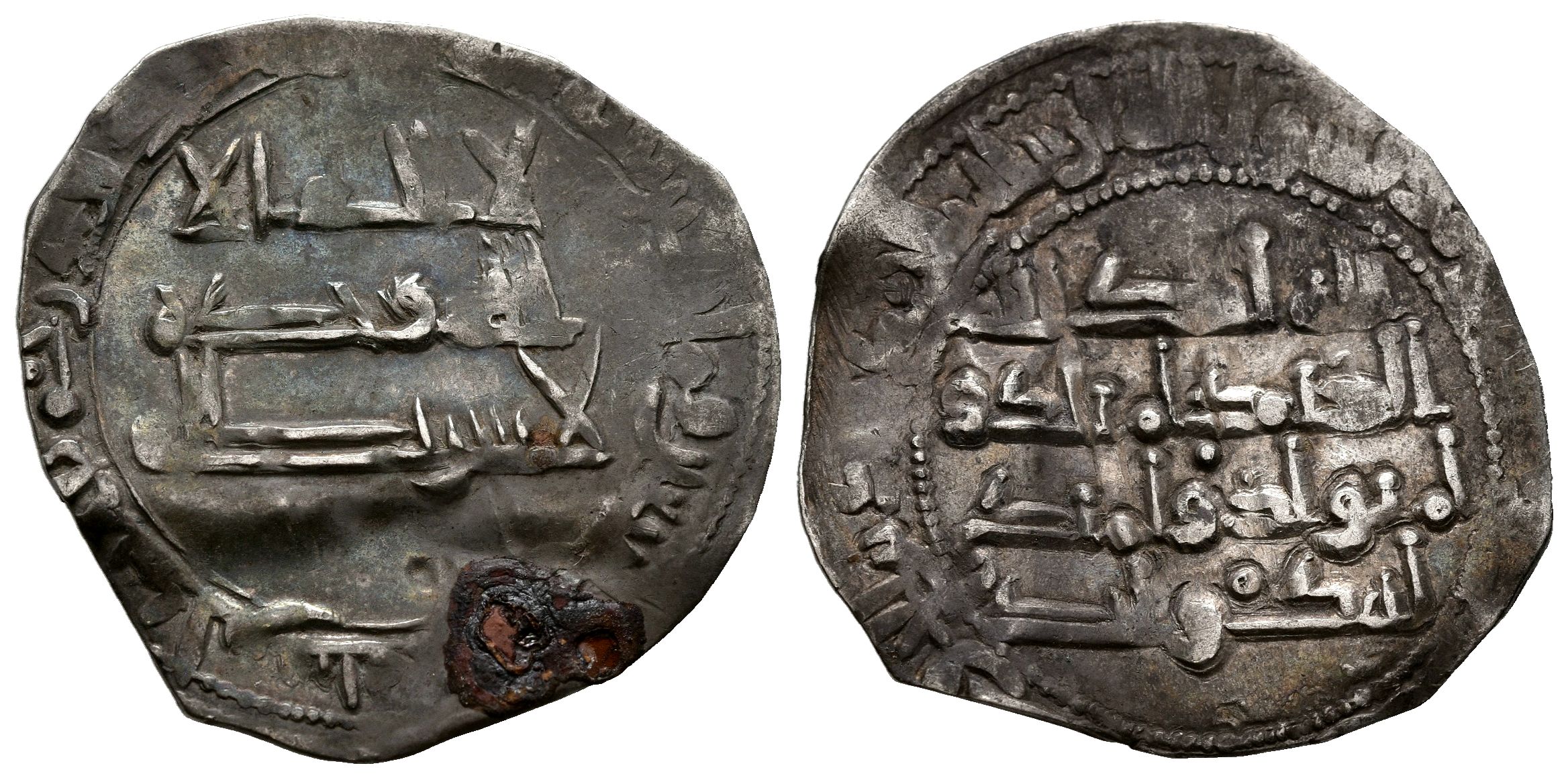EMIRATO INDEPENDIENTE, Muhammad I. Dirham. (Ar. 2,21g/27mm). 24XH. Al-Andalus. Recorte marginal y oxidación que impide visualizar la unidad de la fecha. MBC+.