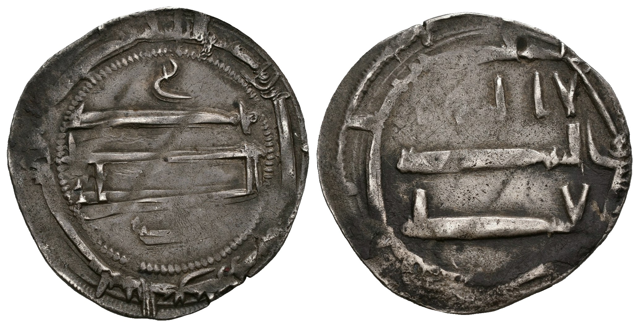 CALIFATO ABASIDA. Dirham (Ar. 2,59g/25mm). 17XH. Al-Abbasiya. Al-Rashid. Citando a Yazid en IIA. MBC. Oxidación en parte de la ceca y fecha. Muy escasa.