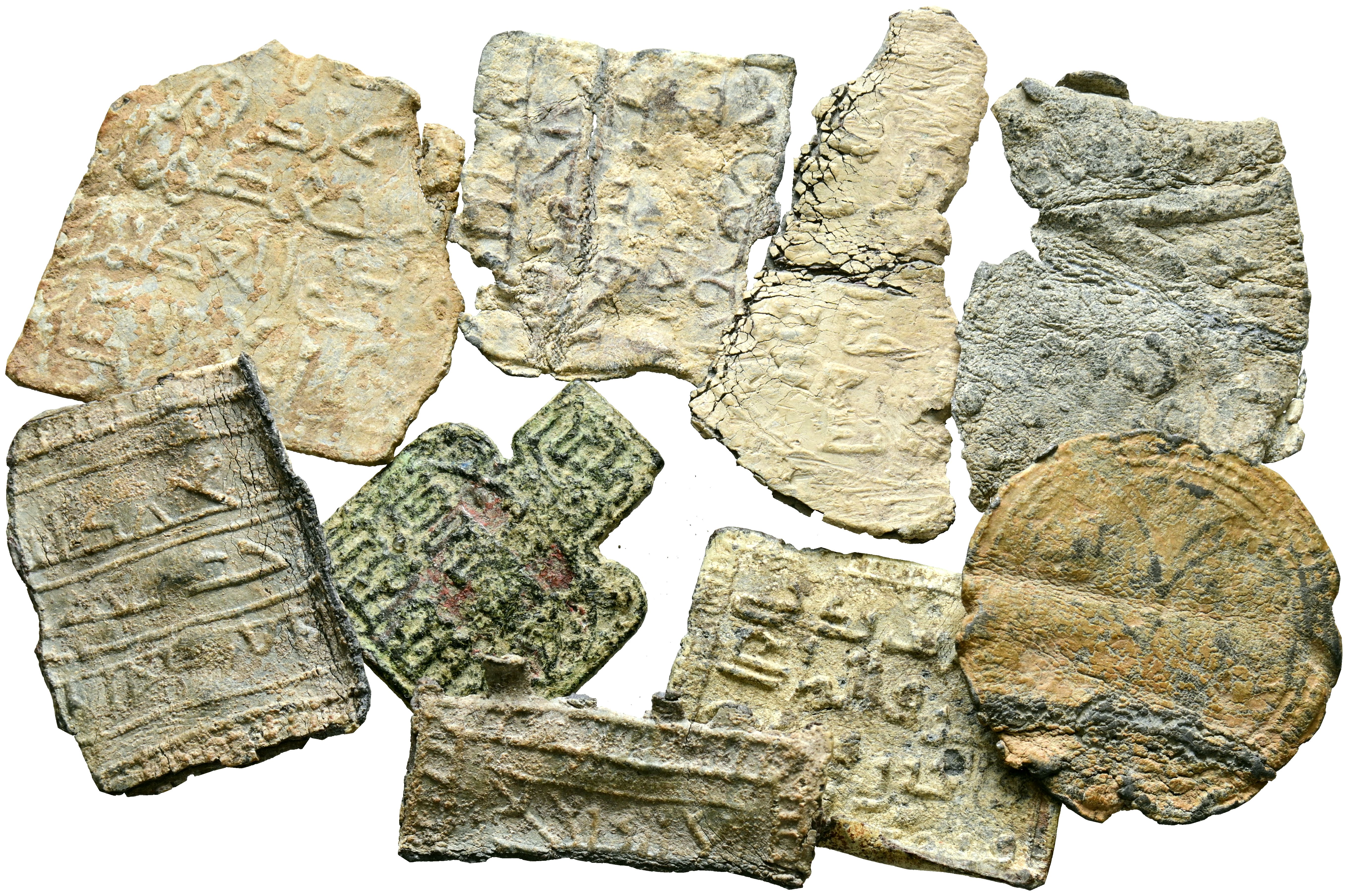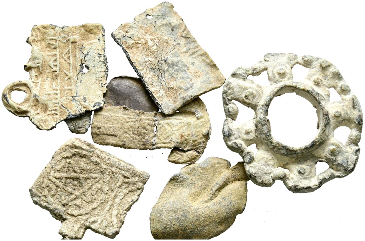 PERIODO CALIFAL O POSTERIOR. Lote de fragmentos de Amuletos en plomo. Diferentes tipos, modelos y medidas. Entre ellos, dos ejemplares de la página de Amuletos: 104 y 107. BC+. A EXAMINAR.