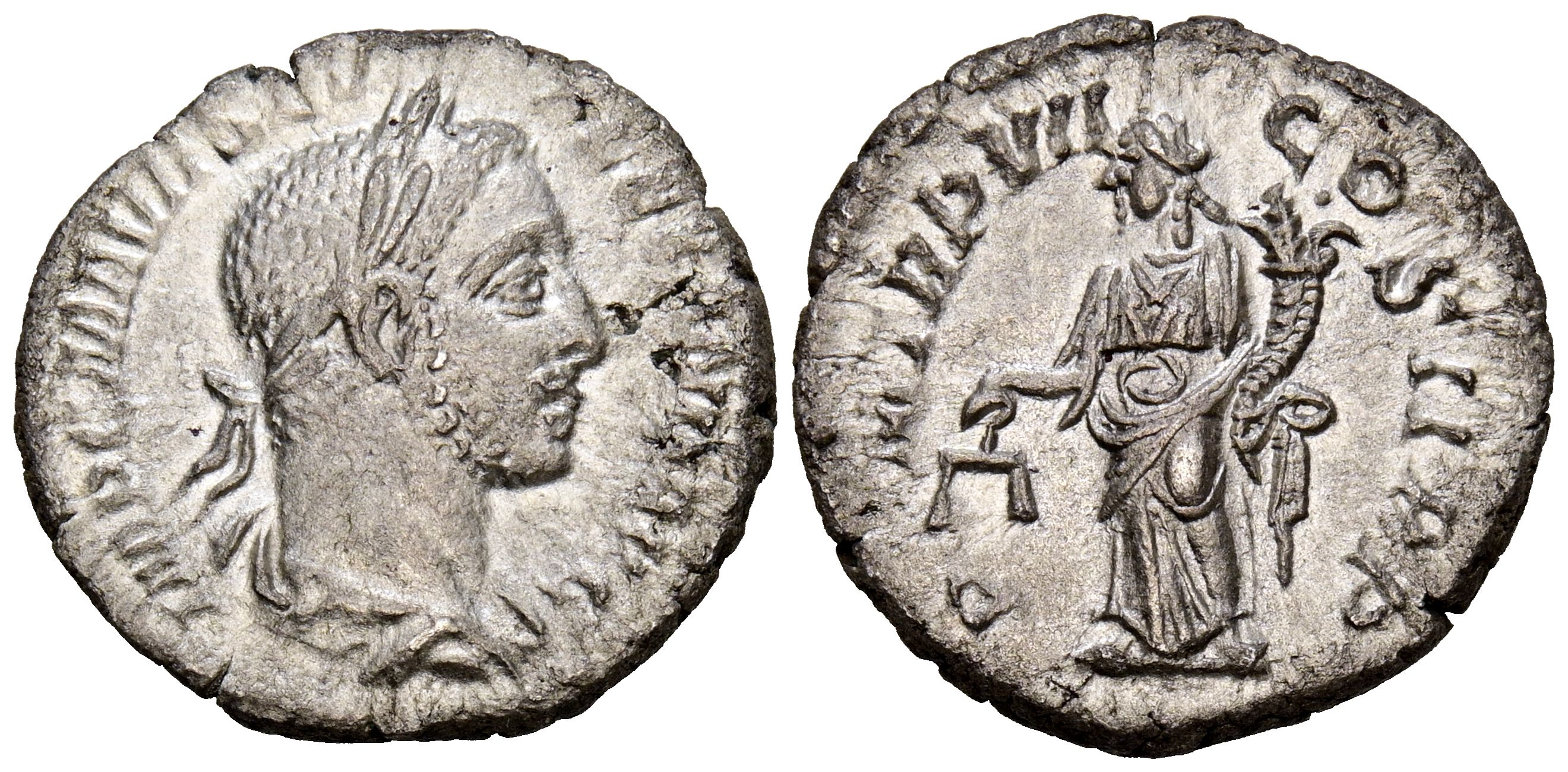 ALEJANDRO SEVERO. Denario. (Ar. 2,87g/18mm). 228 d.C. Roma. (RIC 78). Anv: Busto laureado y drapeado de Alejandro Severo a derecha, alrededor leyenda: IMP C M AVR SEV ALEXAND AVG. Rev: Aequitas estante a izquierda portando escalas y cornucopia, alrededor leyenda: P M TR P VII COS II P P. EBC-/EBC.