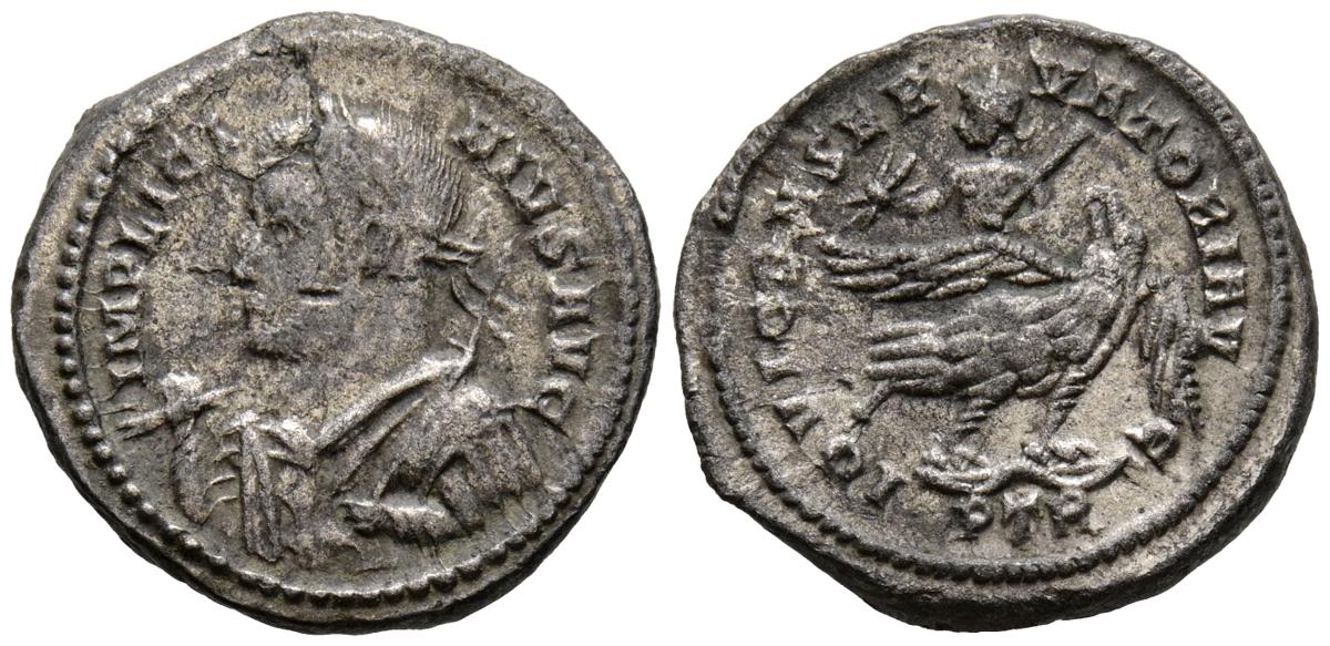 LICINIO I. Follis. (Ve. 3,33g/19mm). 318-319 d.C. Treveri. (RIC 212). Anv: Busto laureado y con coraza de Licinio I a izquierda portando mappa y cetro, alrededor leyenda: IMP LICINIVS AVG. Rev: Júpiter portando rayo y cetro sentado sobre águila con alas extendidas a derecha, en exergo: PTR, alrededor leyenda: IOVI CONSERVATORI AVG. MBC+. Escaso ejemplar.