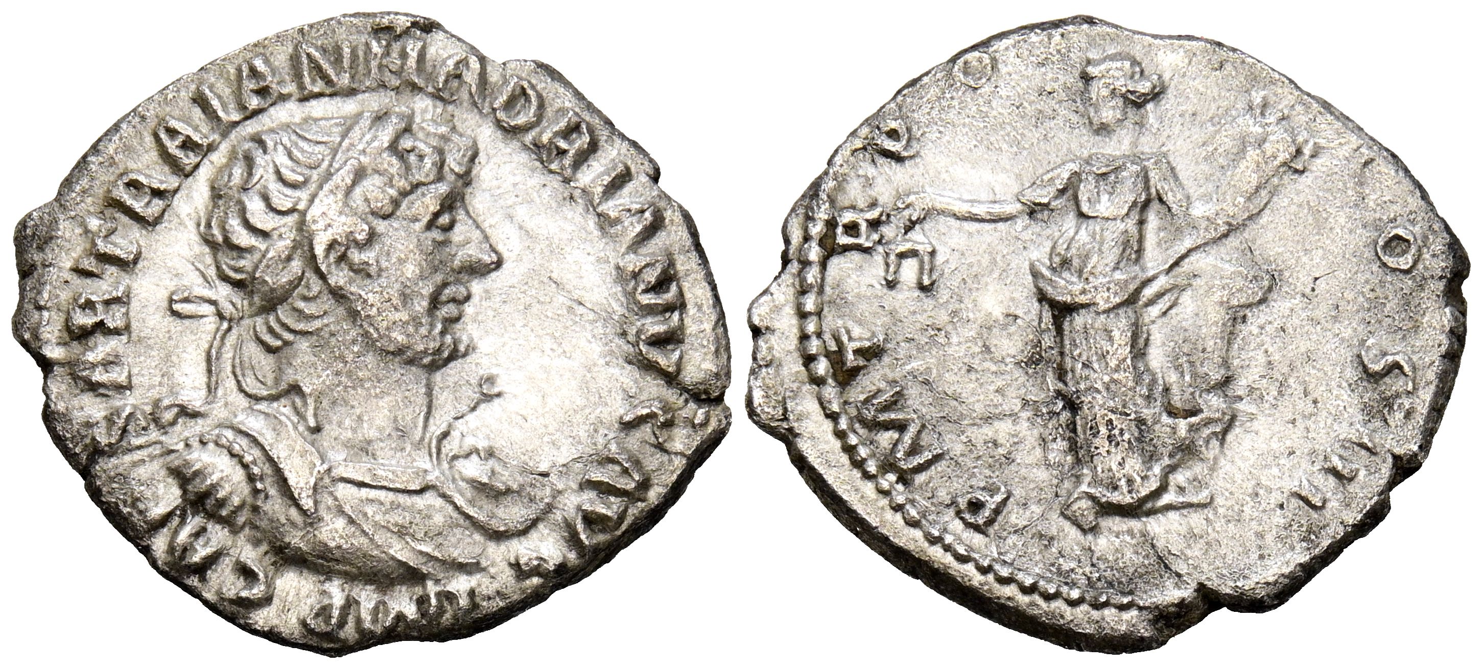 ADRIANO. Denario. (Ar. 3,40g/21mm). 120-121 d.C. Roma. (RIC 391). Anv: Busto laureado, drapeado y con coraza de Adriano a derecha, alrededor leyenda: IMP CAESAR TRAIAN HADRIANVS AVG. Rev: Aequitas estante a izquierda portando cornucopia y escalas, alrededor leyenda: P M TR P COS III. MBC+.