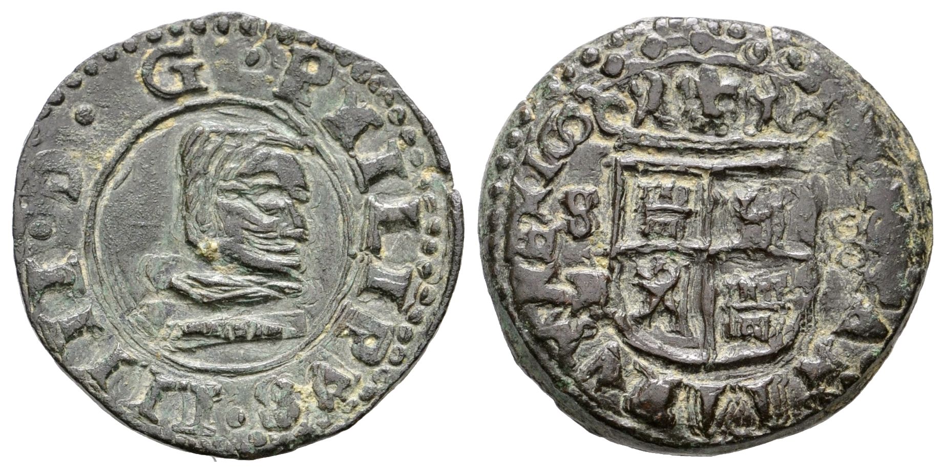 FELIPE IV. 8 MaravedÃs. 166X. Sevilla R. Falsa de época. J.S. página 475. Ae. 3,25g. MBC+.