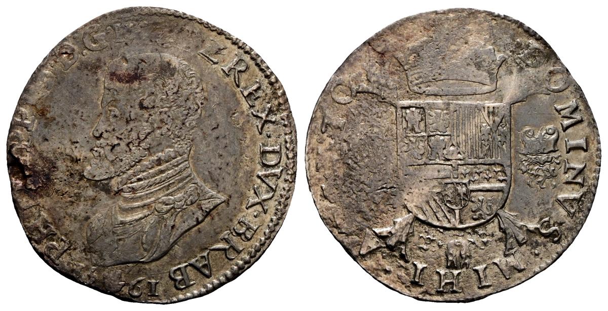 FELIPE II (1556-1598). 1 Escudo Felipe. (Ar. 32,72g/42mm). 1561. Amberes. (Vicenti 1188). MBC. Oxidaciones limpiadas. Tono.