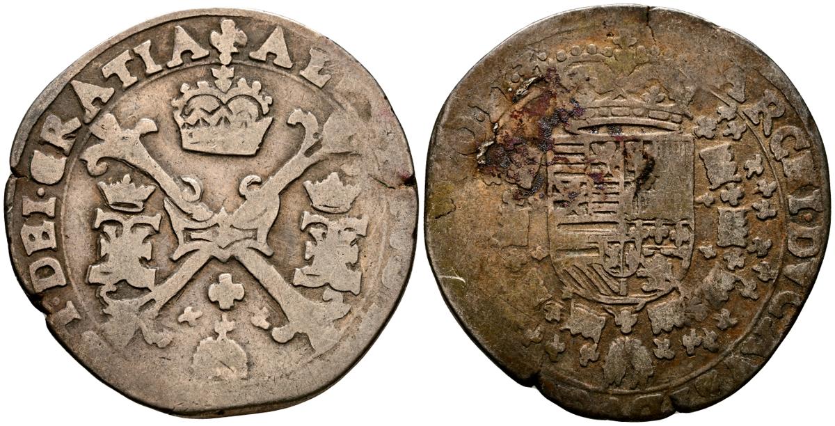ALBERTO E ISABEL (1598-1621). 1/4 Patagón. (Ar. 6,67g/30mm). S/D. Brujas. (Vicenti 268). MBC-. Escaso.