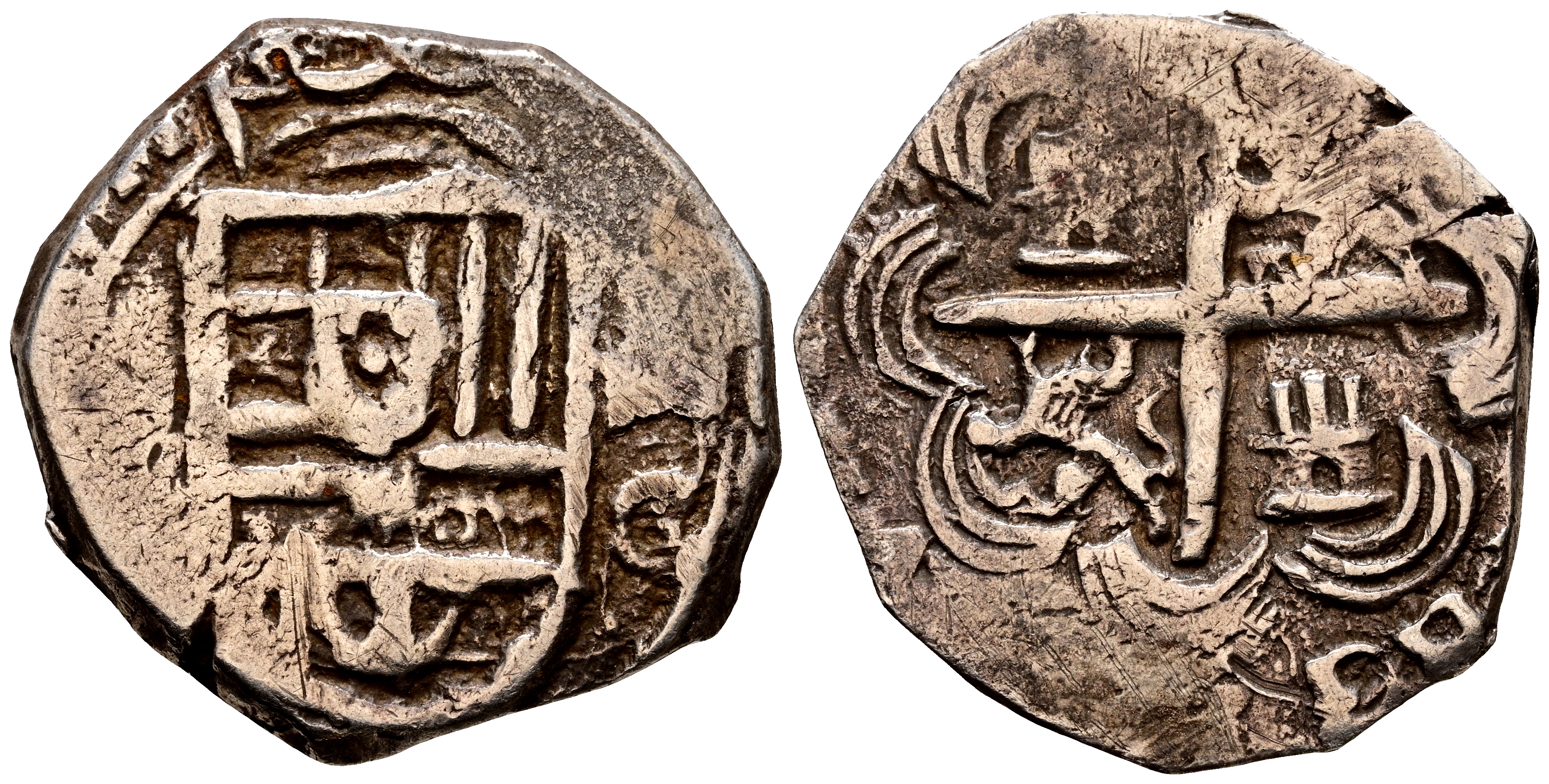 FELIPE III (1598-1621). 1 Real. (Ar. 3,40g/20mm). Fecha no visible. Granada M. (Cal-2019-Tipo 95). Ceca y ensayador a derecha. MBC-. Rara.