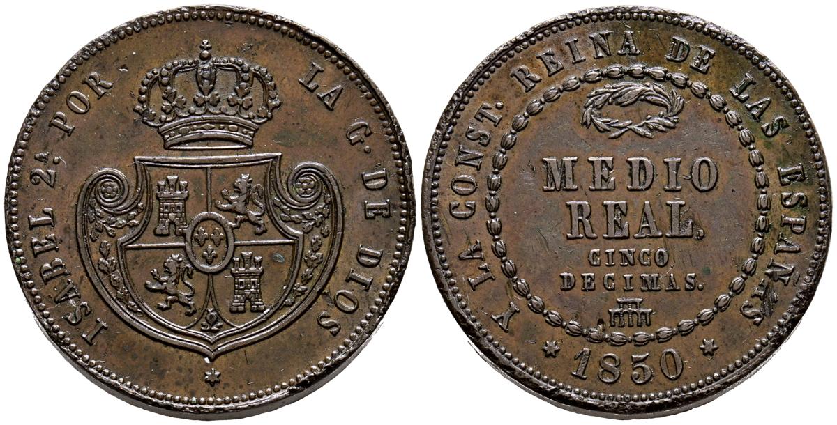 ISABEL II (1833-1868). 1/2 Real (5 Décimas). (Ae. 19,42g/32mm). 1850. Segovia. (Cal-2019-155). MBC+. Bonito tono.