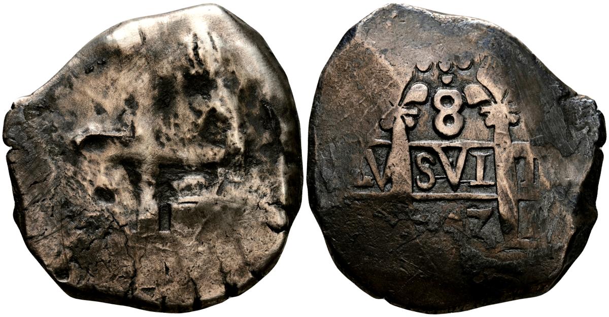FELIPE V (1700-1746). 8 Reales. (Ar. 20,32g/34mm). 1743. Potosí, ensayador no visible. (Cal-2019-Tipo 176). BC+/MBC-. Oxidaciones limpiadas.
