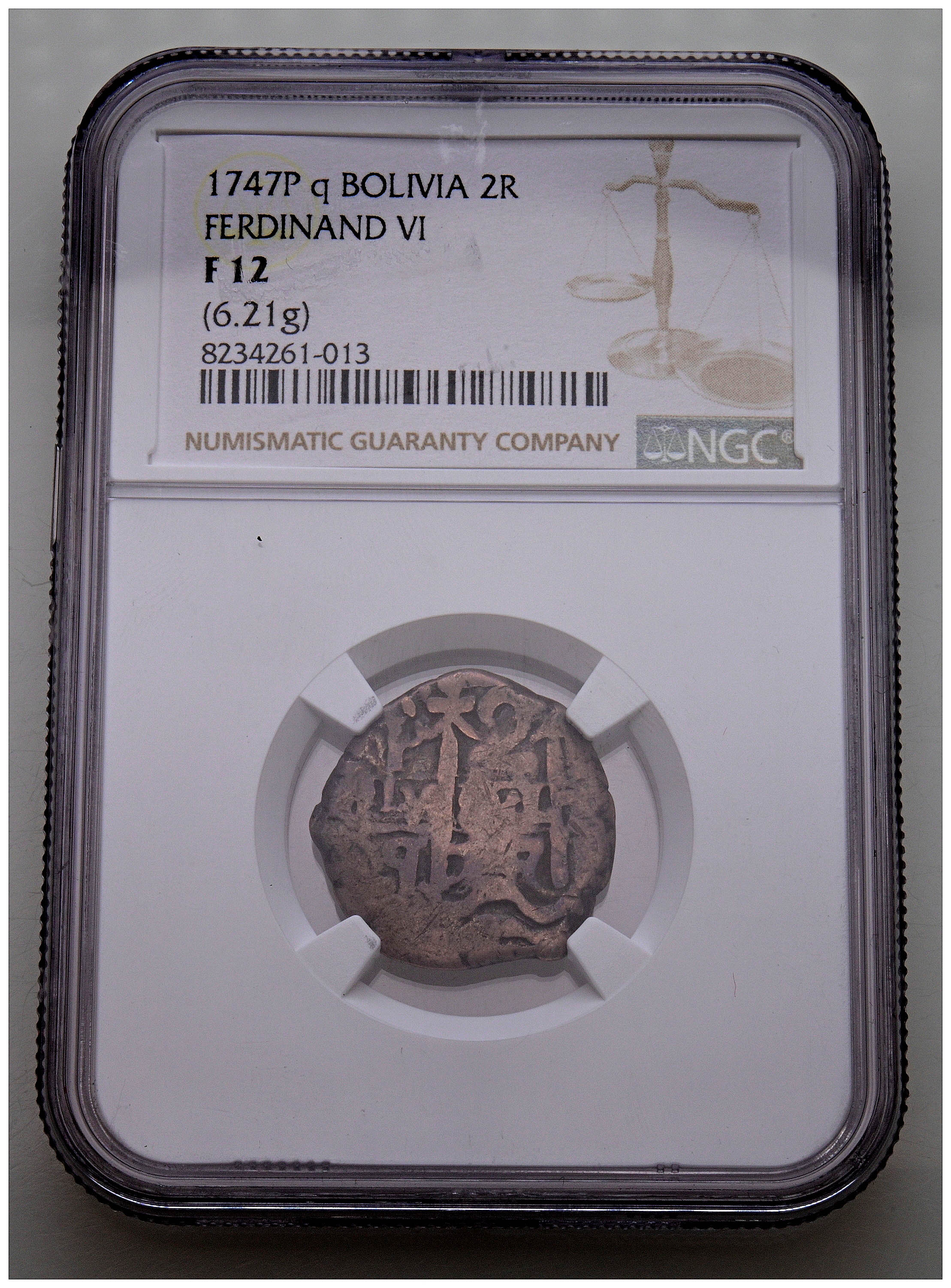 FERNANDO VI (1746-1759). 2 Reales. (Ar. 6,21g/20mm). 1747. Potosí q. (Cal-2019-313). Encapsulado por NGC F 12.