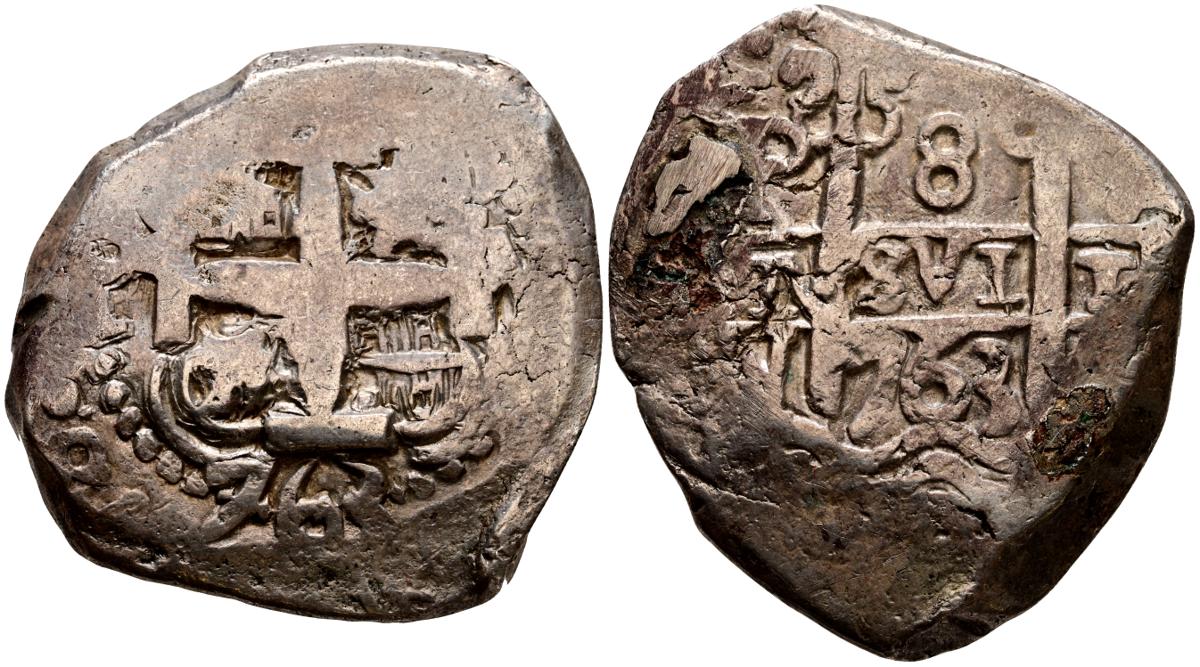 CARLOS III (1759-1788). 8 Reales. (Ar. 26,81g/32mm). 1763. Potosà VY. (Cal-2019-1139). Doble fecha. MBC.