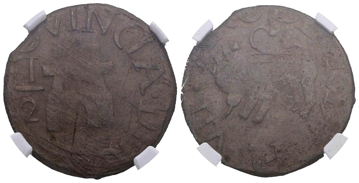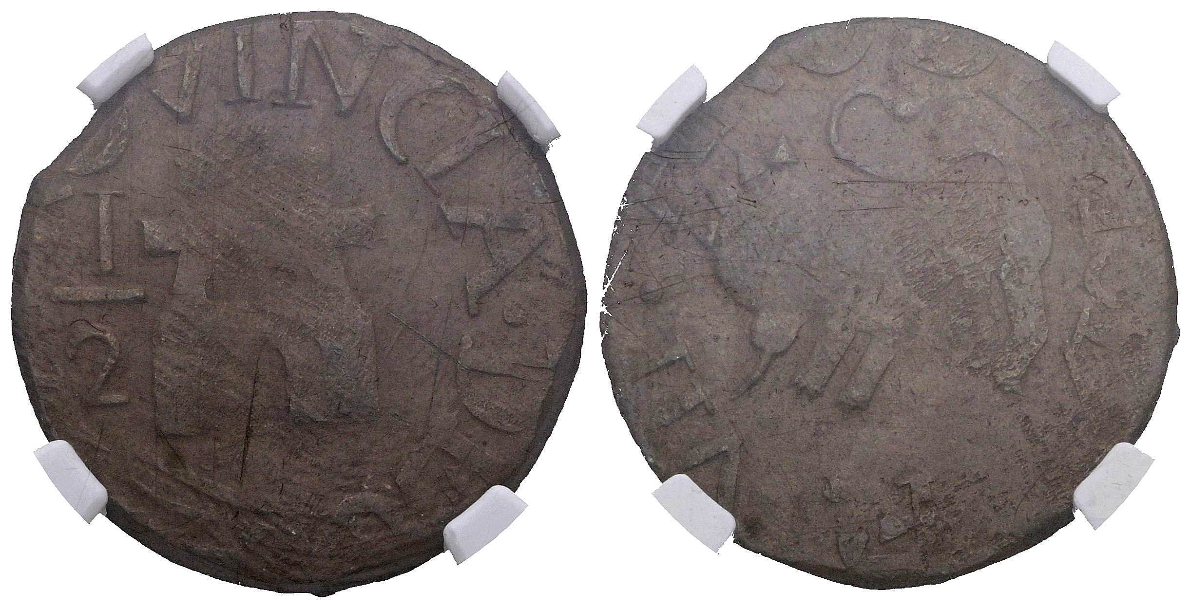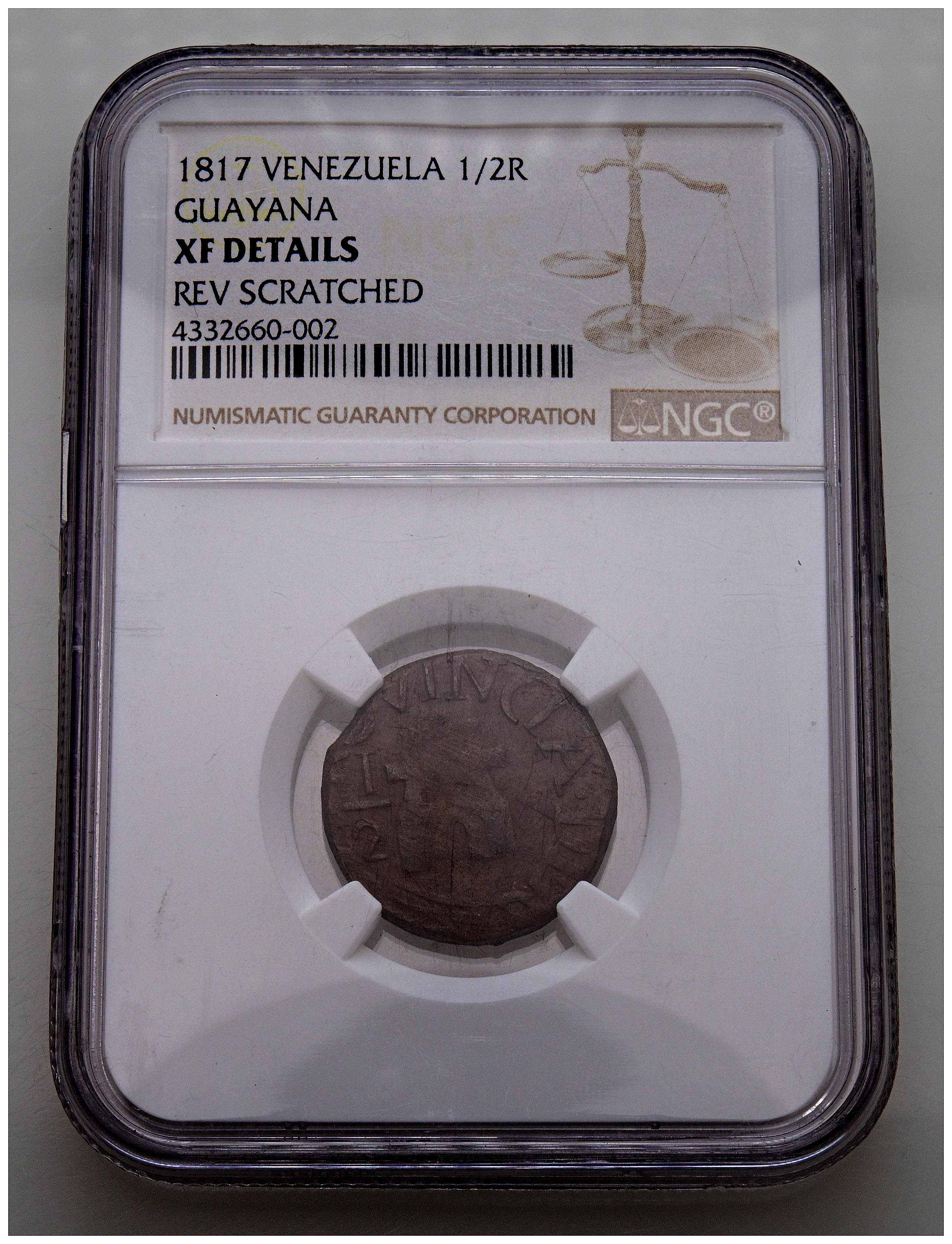 FERNANDO VII (1808-1833). 1/2 Real. (Ae. 2,50g/22mm)*. 1817. Guayana. (Cal-2019-348). Encapsulada por NGC XF Details, Rev Scratched. * Peso y medidas teóricos.