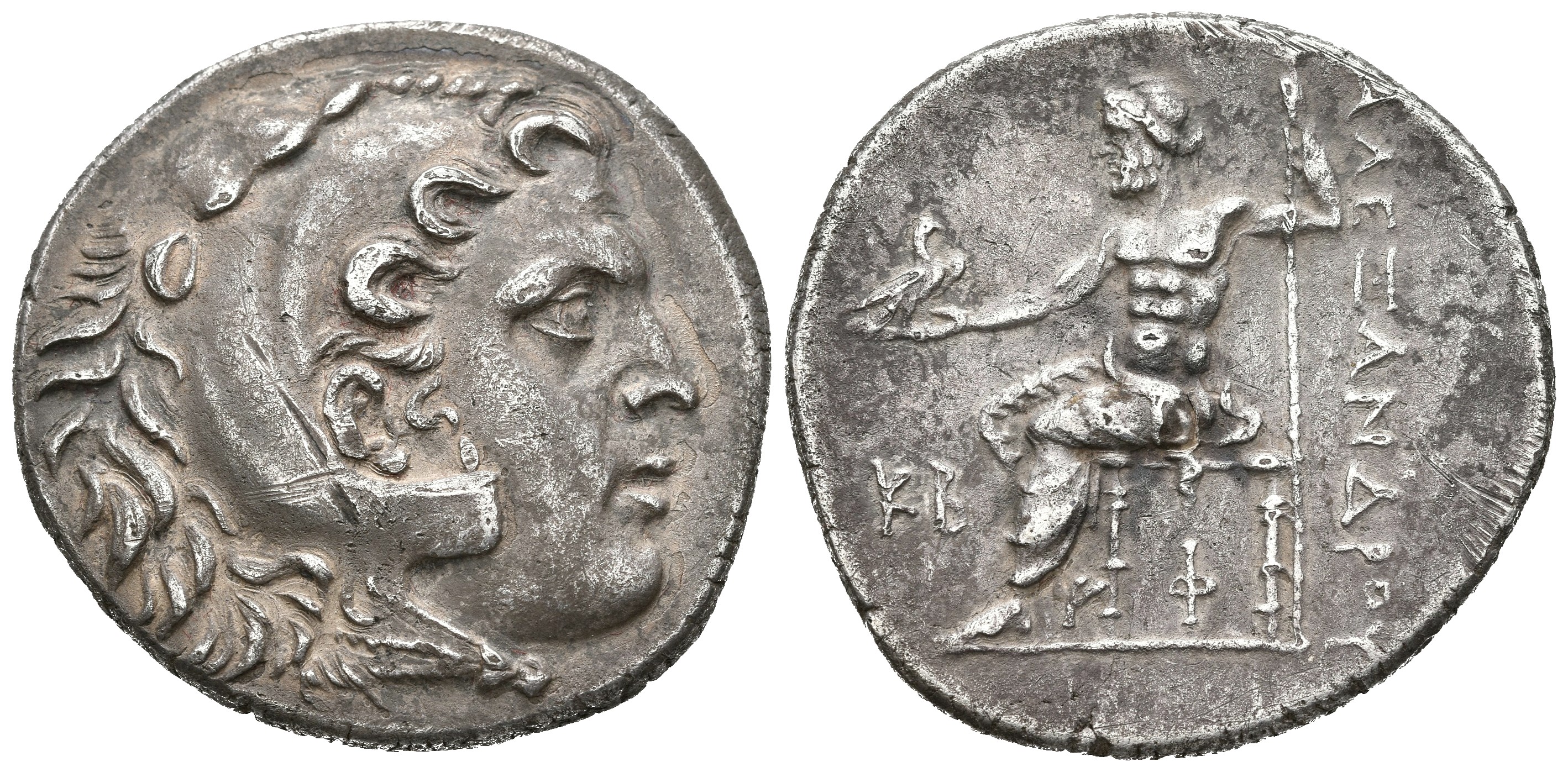 LYKIA, Phaselis. Tetradracma. (Ar. 16,57g/30mm). 197-196 a.C. (Price 2864). Anv: Cabeza de Heracles a derecha con piel de león. Rev: Zeus sentado a izquierda portando cetro y águila a derecha, delante monograma KB, debajo del trono letra griega, detrás leyenda griega. EBC-. Bonito ejemplar, escaso asÃ.Cuenta la mitologÃa griega que el león de Nemea era invencible y tenÃa atemorizada a todos sus habitantes. Un león que parecÃa indestructible y cuya piel era de tal dureza que ningún arma podÃa atravesarla. Tras intentarlo infructuosamente con varias armas fue finalmente con sus propias manos como Hércules acabó con la vida de este león. Con su piel se hizo la armadura que le protegió en todas sus batallas y que es con la que aparece representado en el anverso de esta moneda. Además utilizó su cabeza a modo de casco o yelmo