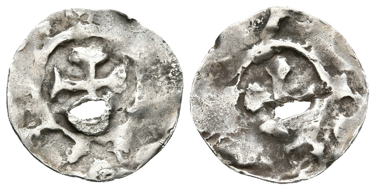 SUNYER I. Diner. (911-947) Comtats de Barcelona-Ausona i Girona. Cru.C.G. 1813. Ar. 0,59g. Perforación. MBC. Rara.