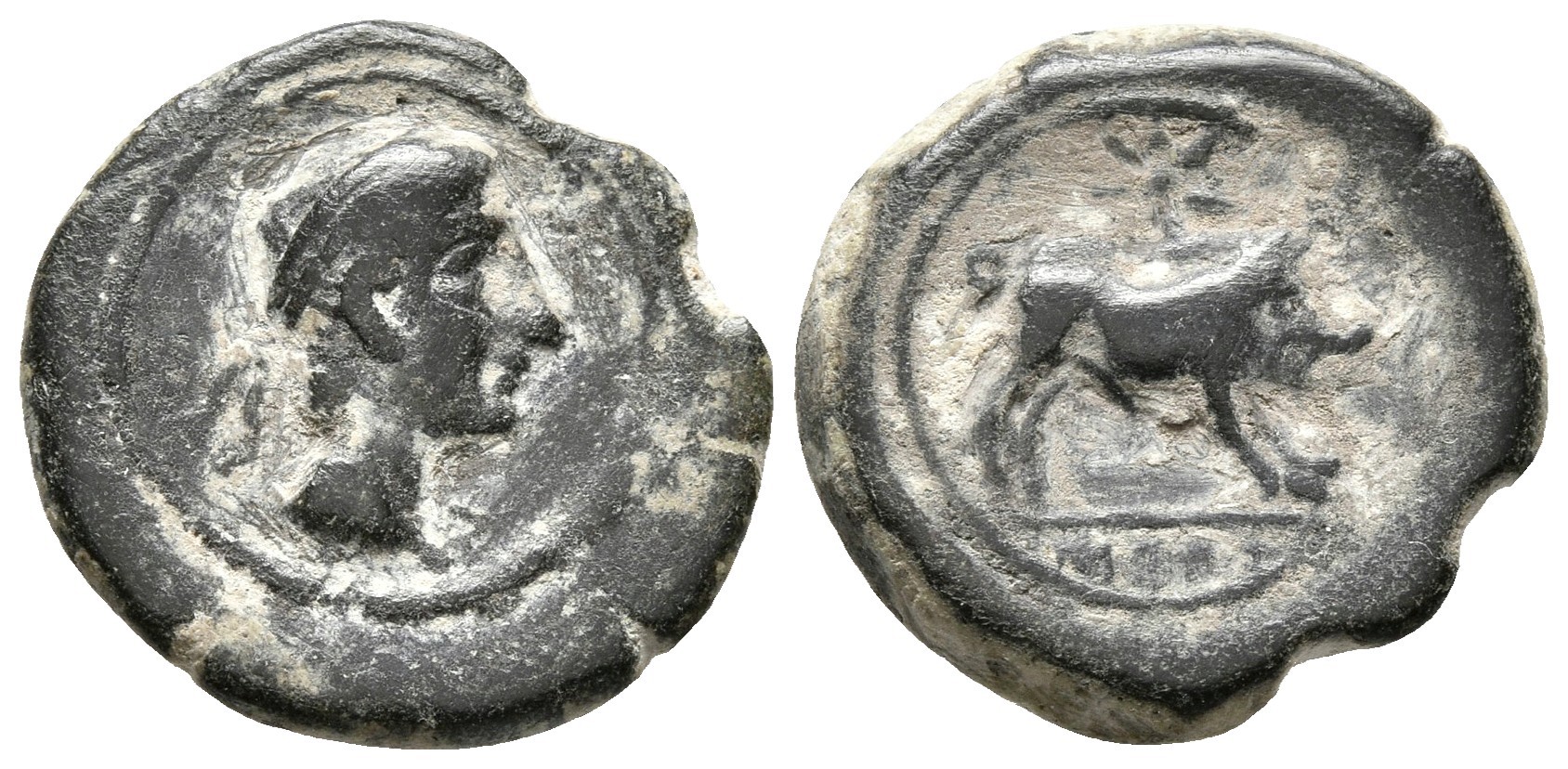 CASTULO. Cuadrante. 180 a.C. Cazlona (Jaén) A/ Cabeza masculina a derecha. R/ Jabalà a derecha, encima estrella, debajo CaSTeLE. FAB-735. Ae. 3,66g. MBC.