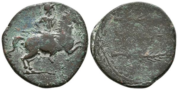 LAELIA. As. 50-20 a.C. Olivares (Sevilla). A/ Jinete con lanza a derecha. R/ Dos espigas a derecha, entre ellas leyenda LAELIA. FAB-1649. Ae. 9,68g. BC+/MBC-