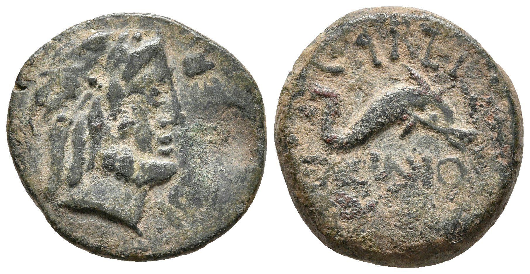 CARTEIA. Semis. Epoca de Augusto. 27 a.C.-14 d.C. San Roque (Cádiz). A/ Cabeza de Neptuno a derecha, delante IIII VIR. ITER, detrás tridente. R/ DelfÃn a derecha. CARTEIA C. MINI. C. F. FAB-680. Ae. 4,50g. MBC-.