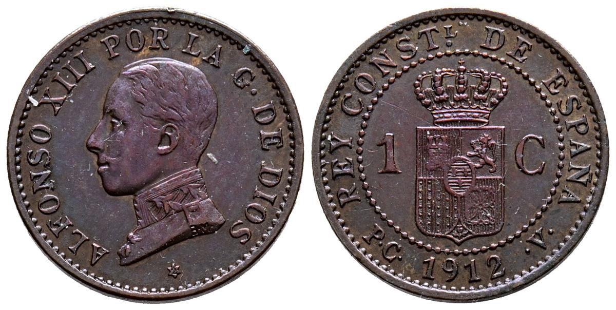 ALFONSO XIII (1885-1931). 1 Céntimo. (Ae. 1,00g/15mm). 1912 *2. Madrid PCV. (Cal-4). EBC+. Bonito tono.