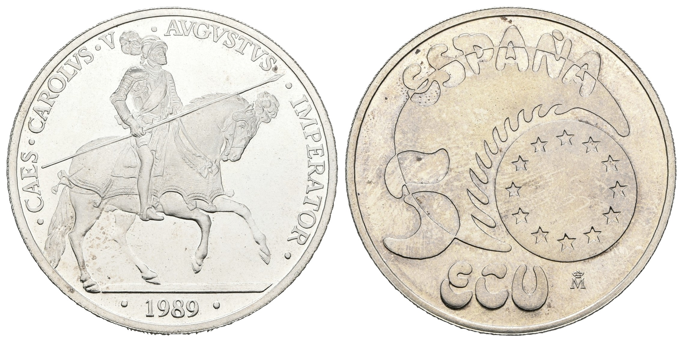 ESPAÑA. 5 ECU. Carlos V. 1989 (Ar. 33,71g/42,0mm). Proof