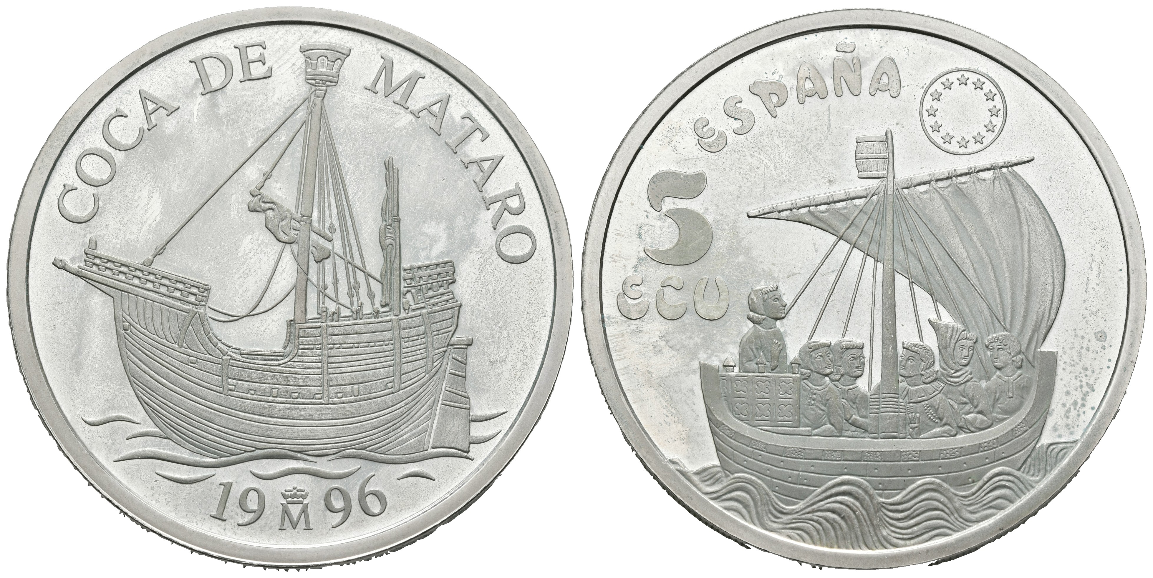 ESPAÑA. 5 ECU. Coca de Mataró. 1996 (Ar. 33,60g/42,0mm). Proof