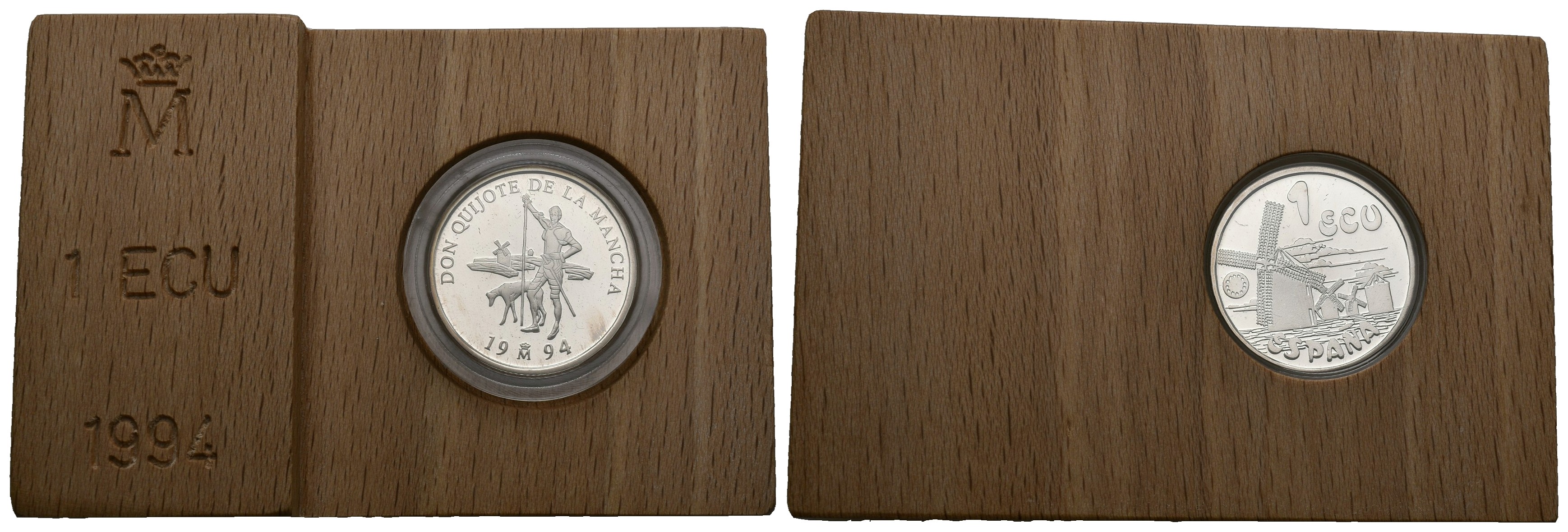 CONTEMPORANEO. 1 Ecu. (Ar. 6,72g/24mm). 1994. Cervantes-Don Quijote. PROOF. 125.000 acuñaciones. Incluye estuche oficial y certificado de autenticidad.
