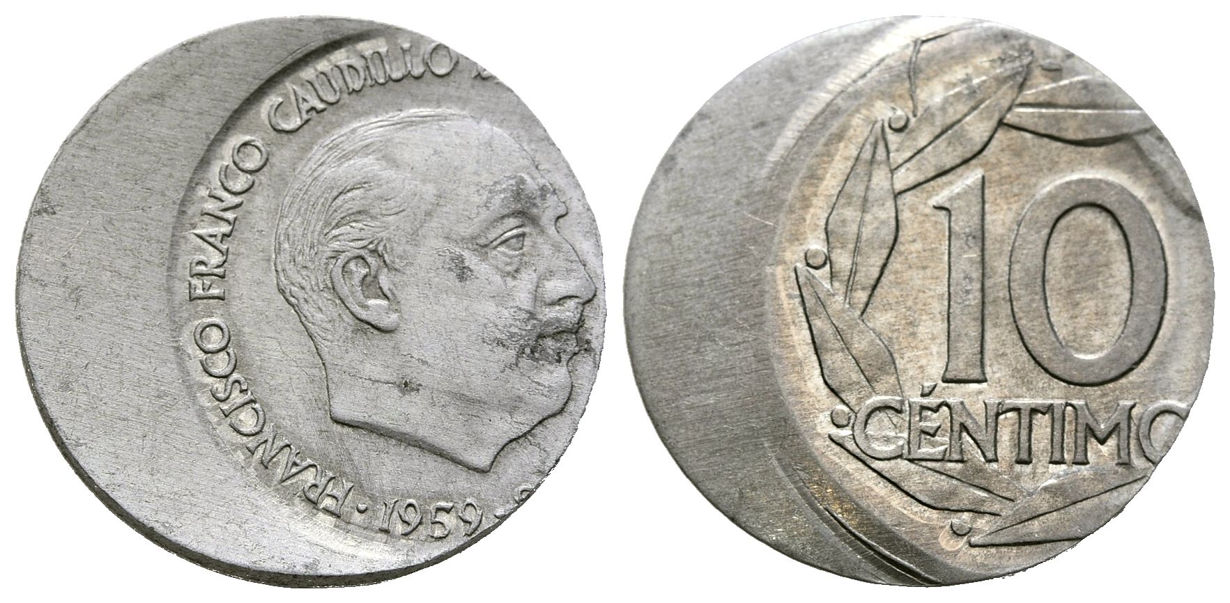 ESTADO ESPAÑOL (1936-1975). 10 Céntimos. (Al. 0,74g/18mm). 1959. Madrid. (Cal-2019-16). EBC-. Acuñación muy desplazada: 5 mm.