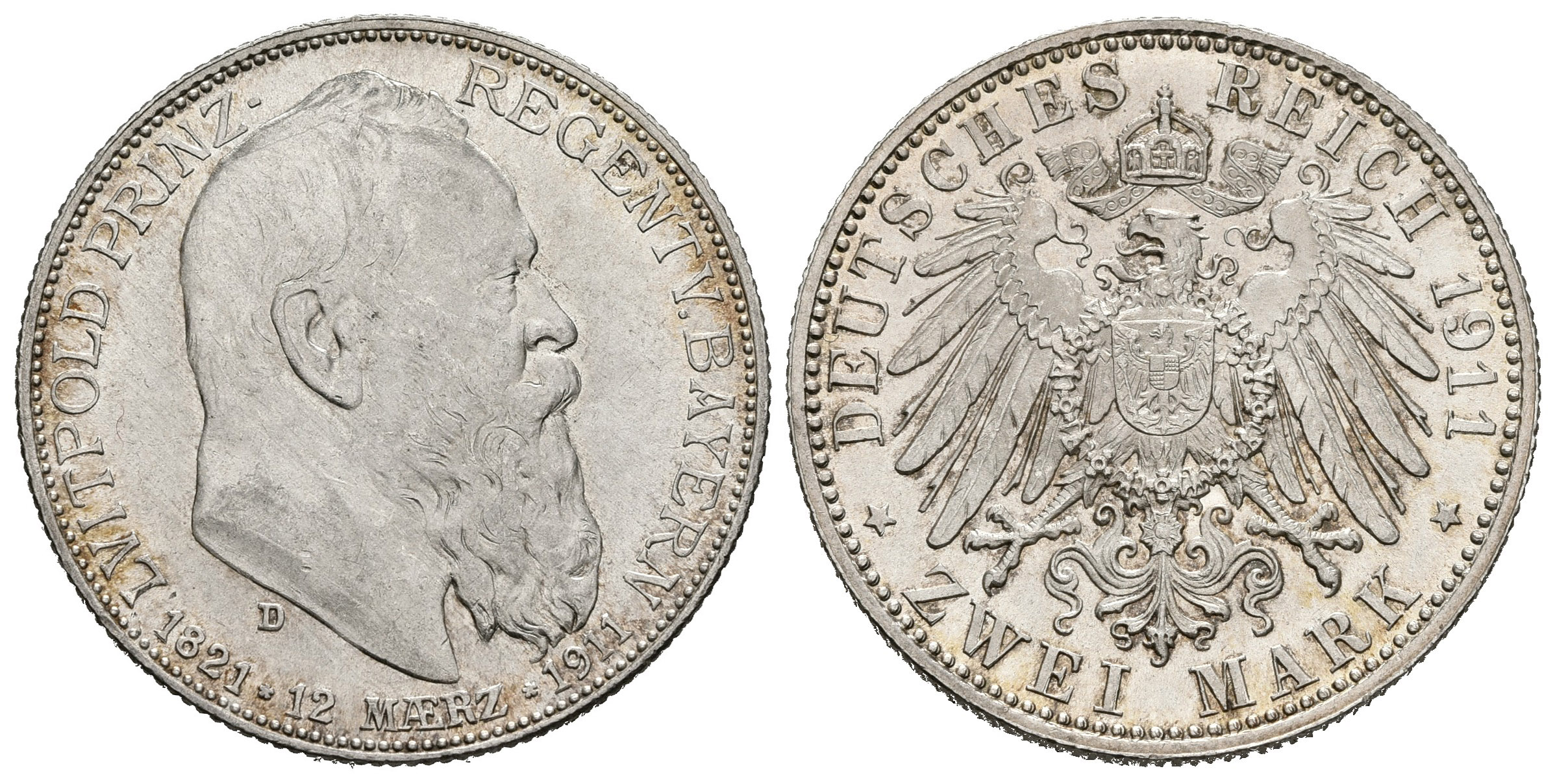 ALEMANIA. 2 Marcos (Ar.11,07g/28mm). 1911. Baviera. (Km#997). 90 aniversario del nacimiento del PrÃncipe Leopoldo. EBC.