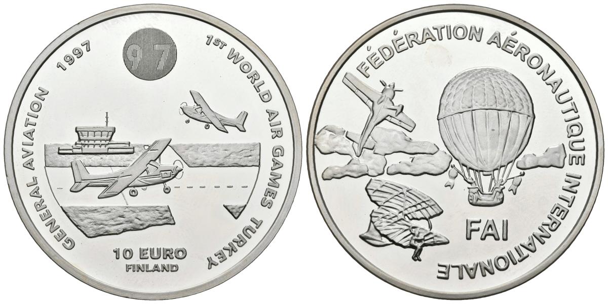 FINLANDIA. 10 Euro. 1st World Air Games Turkey. General Aviation. 1997. (Ar. 27,27g/38,5mm). Proof.