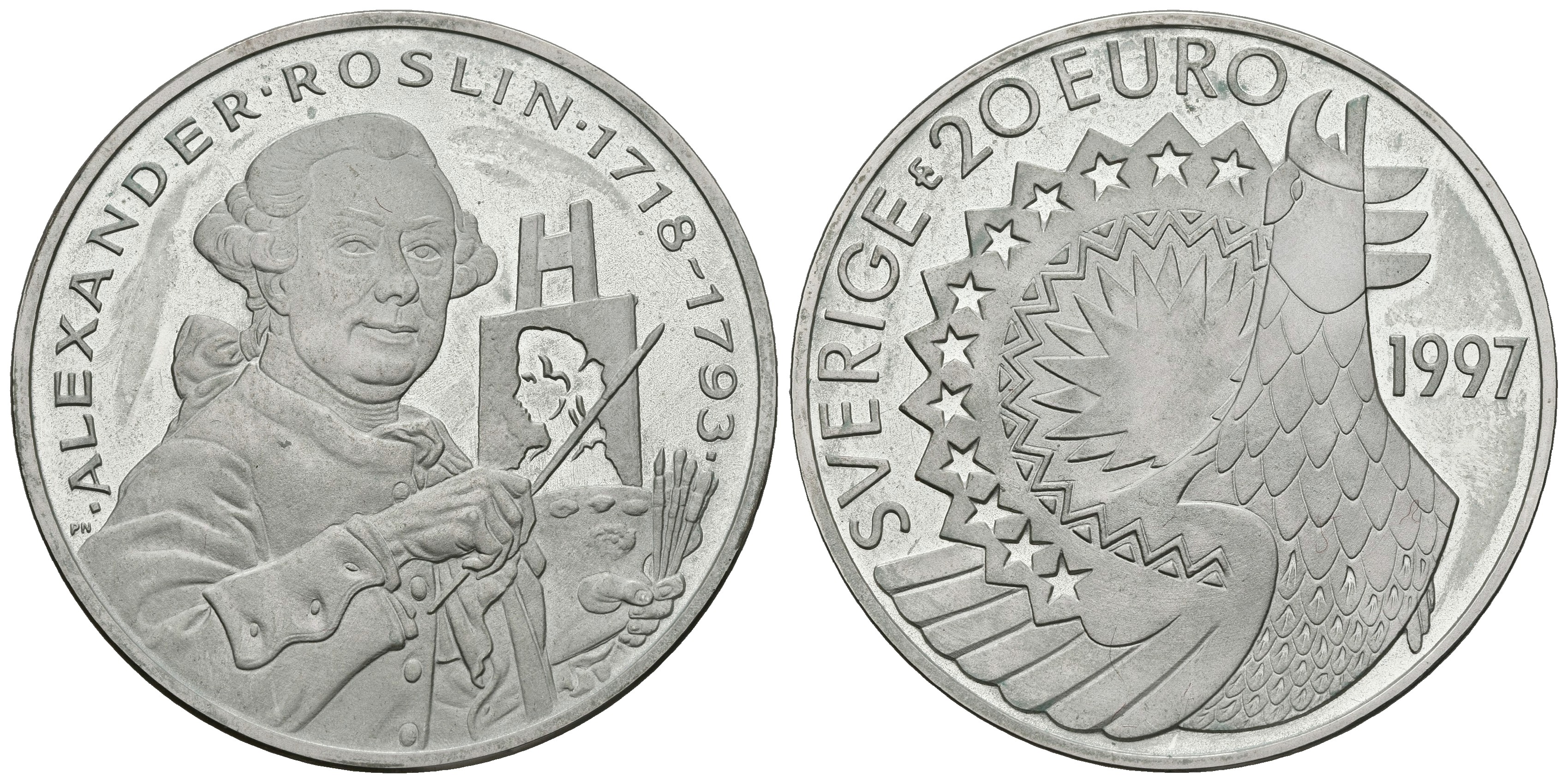 SUECIA. 20 Euro. Alexander Roslin 1718-1793. 1997. (Ar.26,99g/36,00mm). Proof.