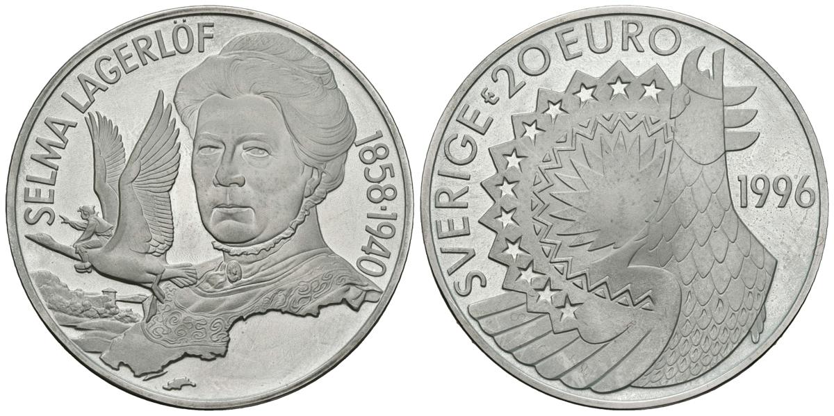 SUECIA. 20 Euro. Selma Lagerlof 1858-1940. 1996. (Ar.26,93g/36,00mm). Proof.