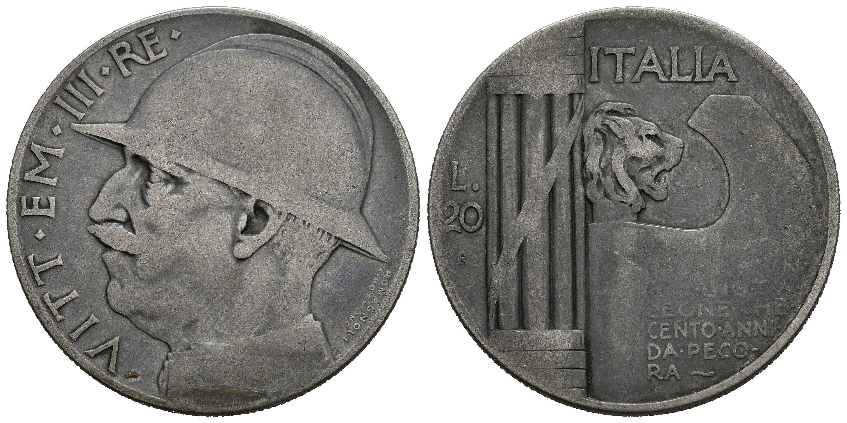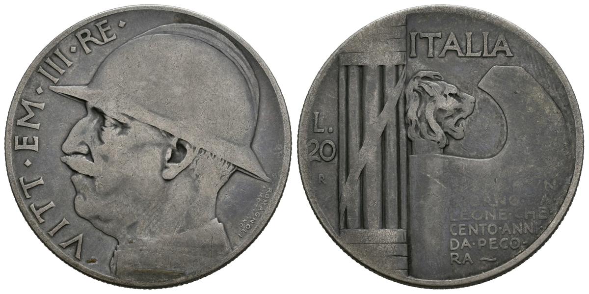 ITALIA. Vittorio Emanuele III. 20 Lire. 1928. Km#70. Ar. 19,39g. BC+.