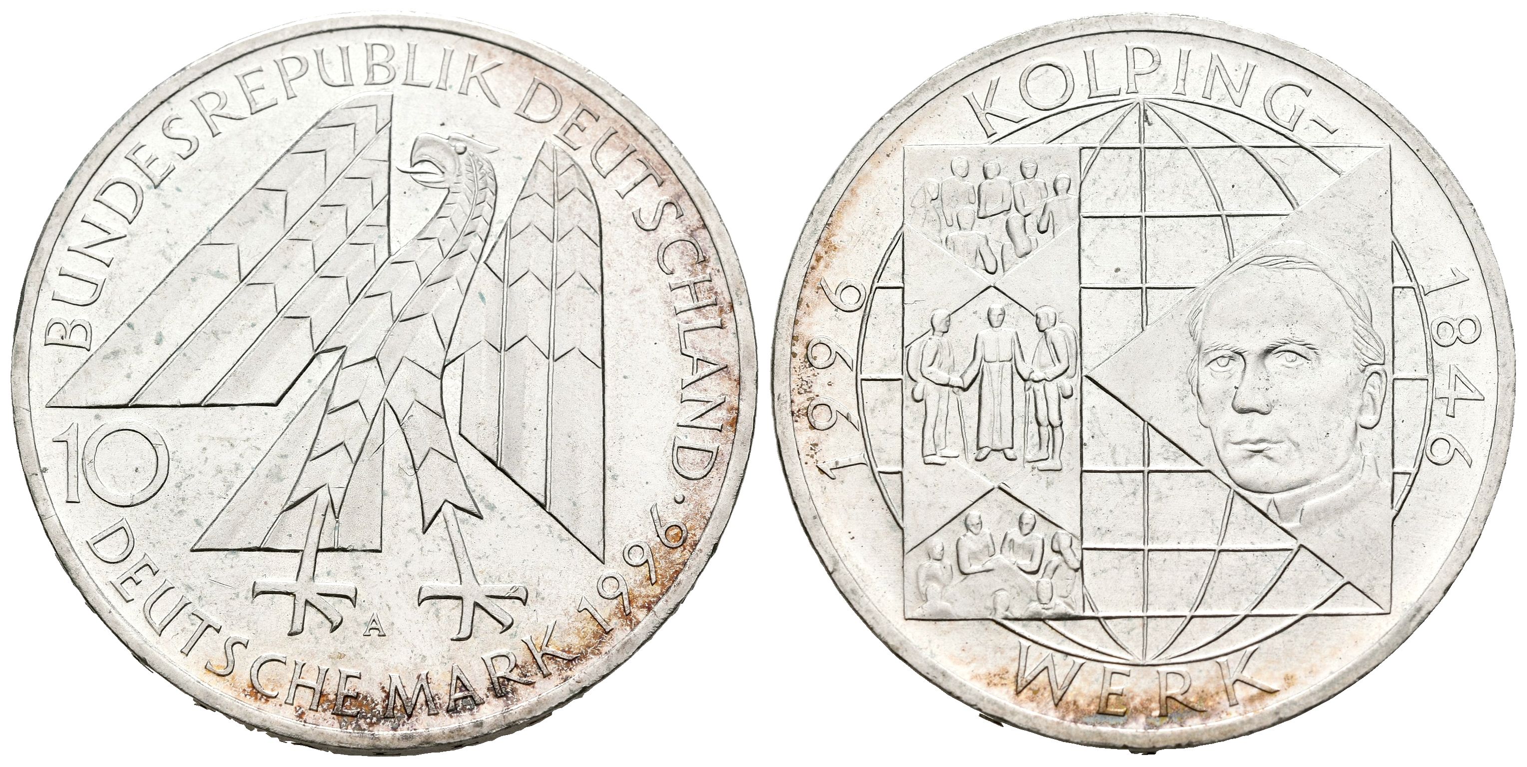 ALEMANIA. 10 Marcos (Ar. 15,45g/33mm). 1996. BerlÃn A. 150 Aniversario Adolfo Kolping. (Km#188). EBC.