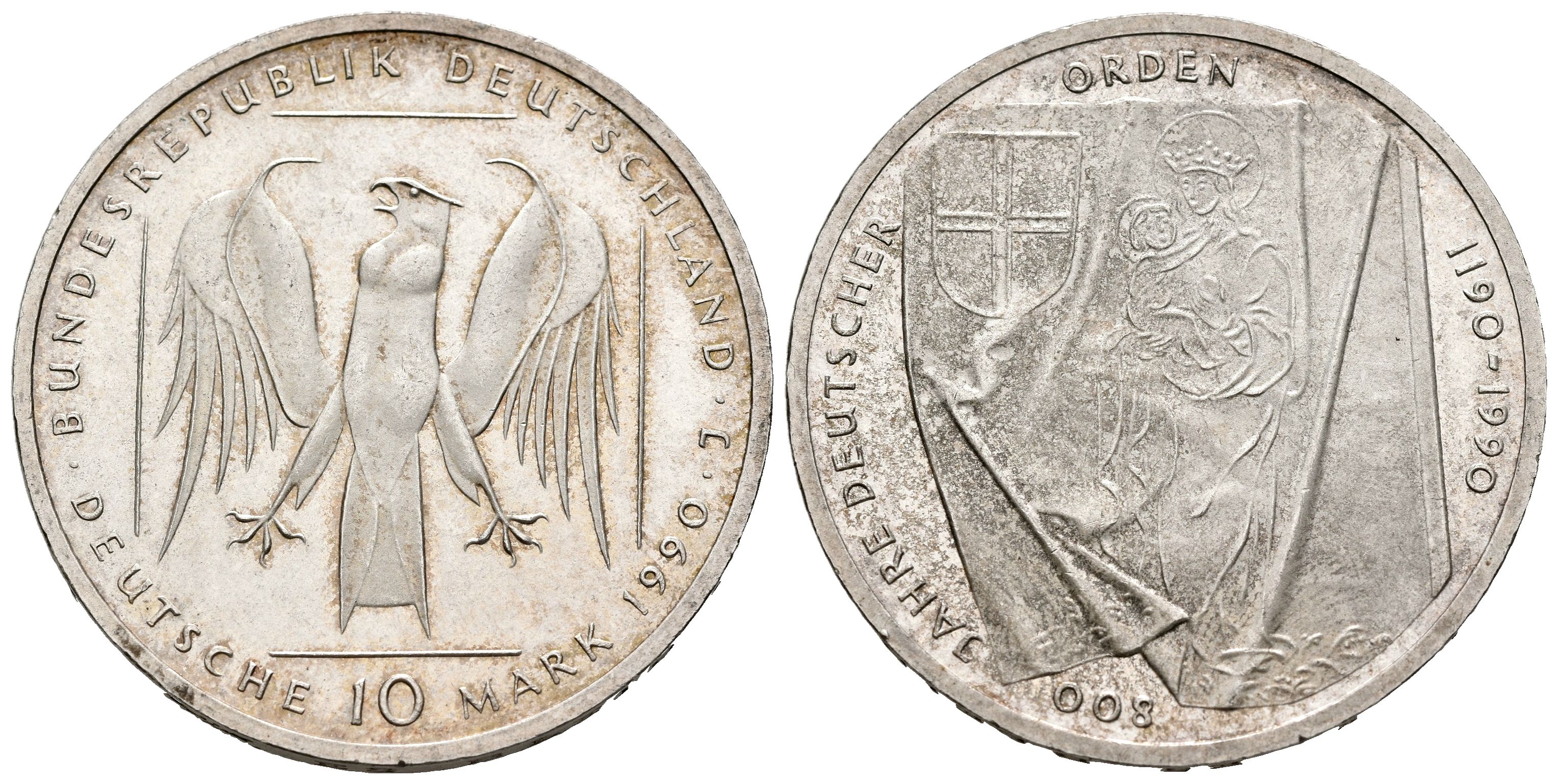 ALEMANIA. 10 Marcos (Ar. 15,32g/33mm). 1990. Hamburgo J. 800 Aniversario de la Orden Teutónica. (Km#176). EBC.