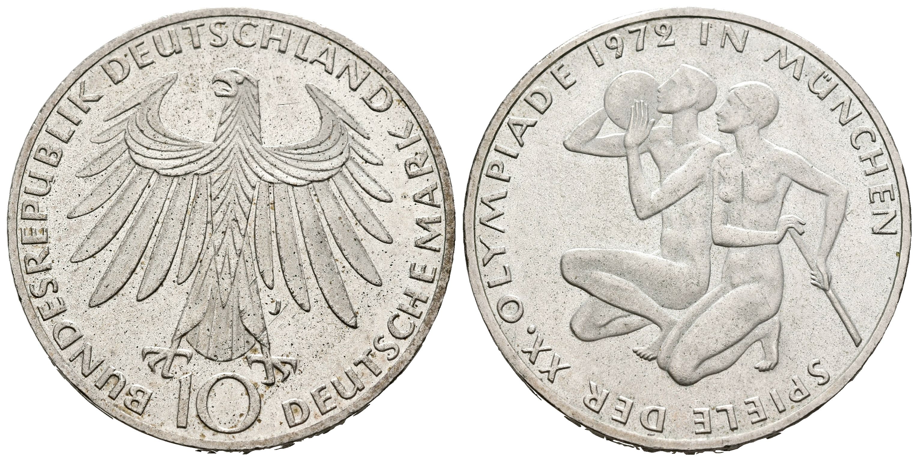 ALEMANIA. 10 Marcos (Ar. 15,56g/33mm). 1972. Hamburgo J. Juegos OlÃmpicos de Munich. Atletas. (Km#132). EBC.