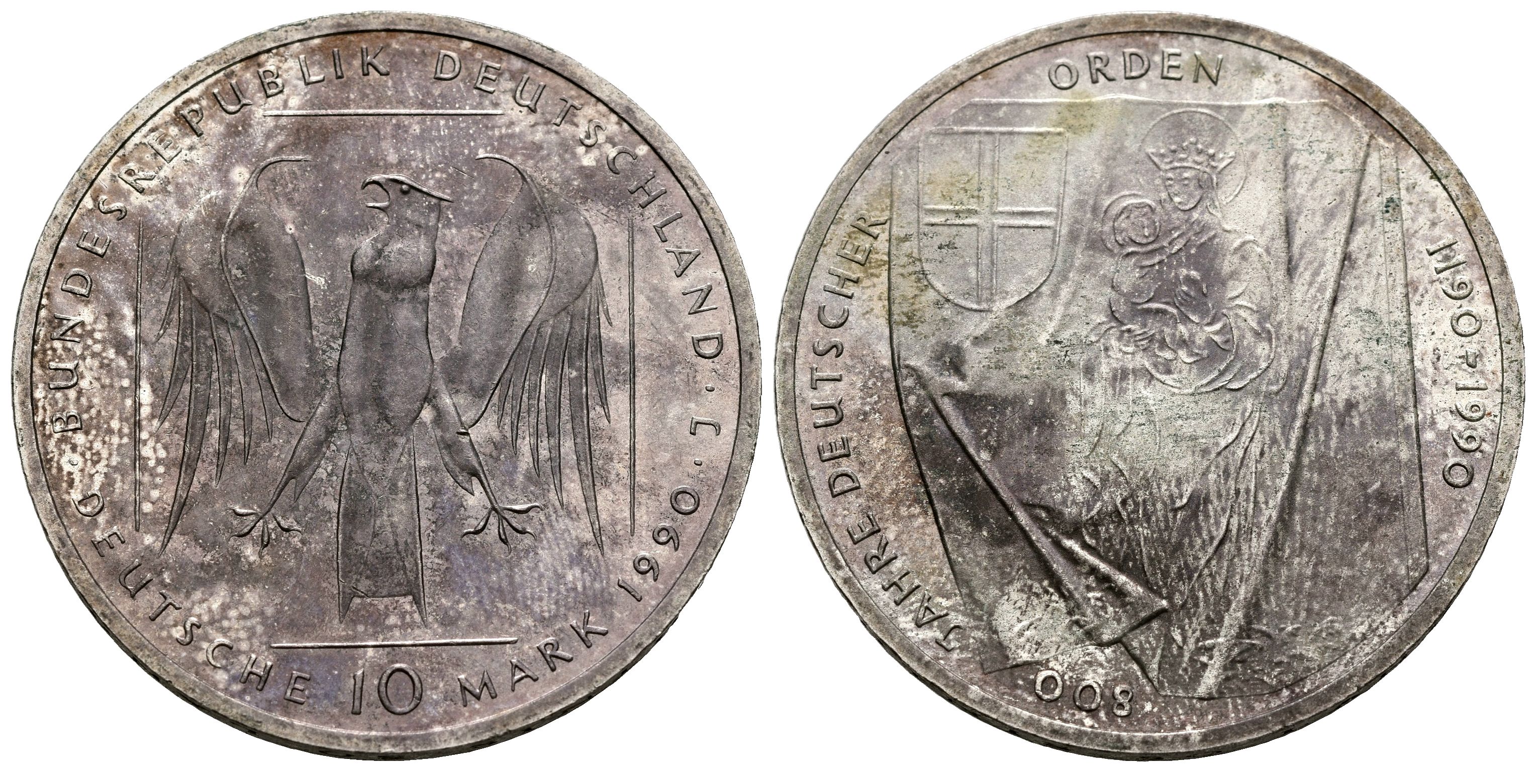 ALEMANIA. 10 Marcos (Ar. 15,66g/33mm). 1990. Hamburgo J. 800 Aniversario de la Orden Teutónica. (Km#176). EBC. Pátina oscura.