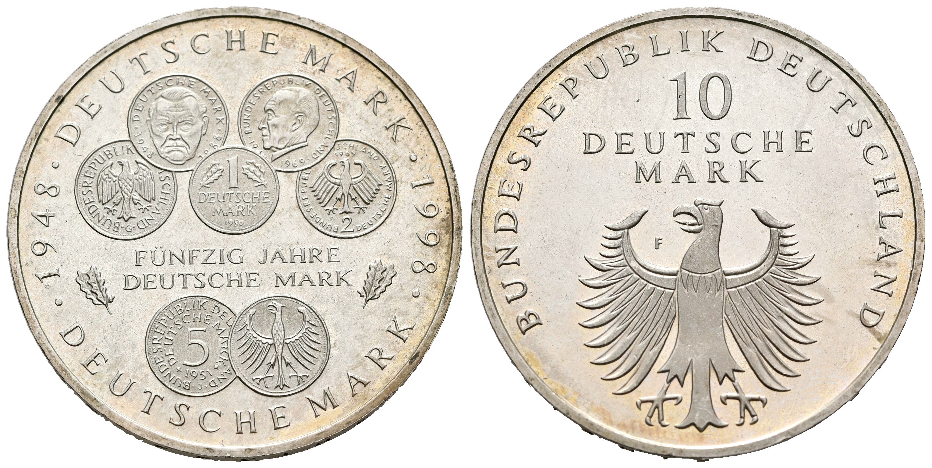 ALEMANIA. 10 Marcos (Ar. 15,44g/33mm). 1998. Stuttgart F. 50 Aniversario del Marco Alemán. (Km#195). SC-.