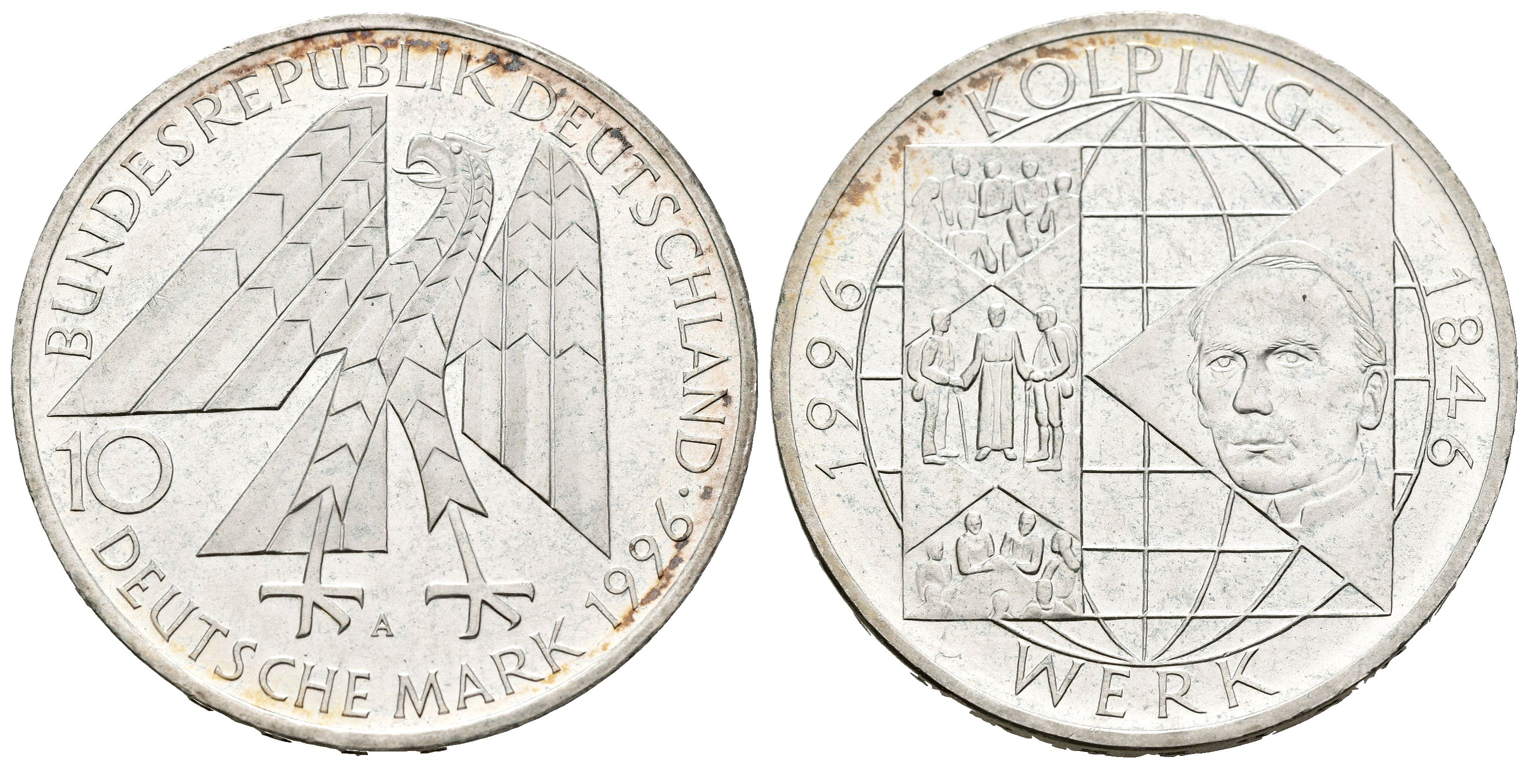 ALEMANIA. 10 Marcos (Ar. 15,46g/33mm). 1996. BerlÃn A. 150 Aniversario Adolfo Kolping. (Km#188). EBC+.