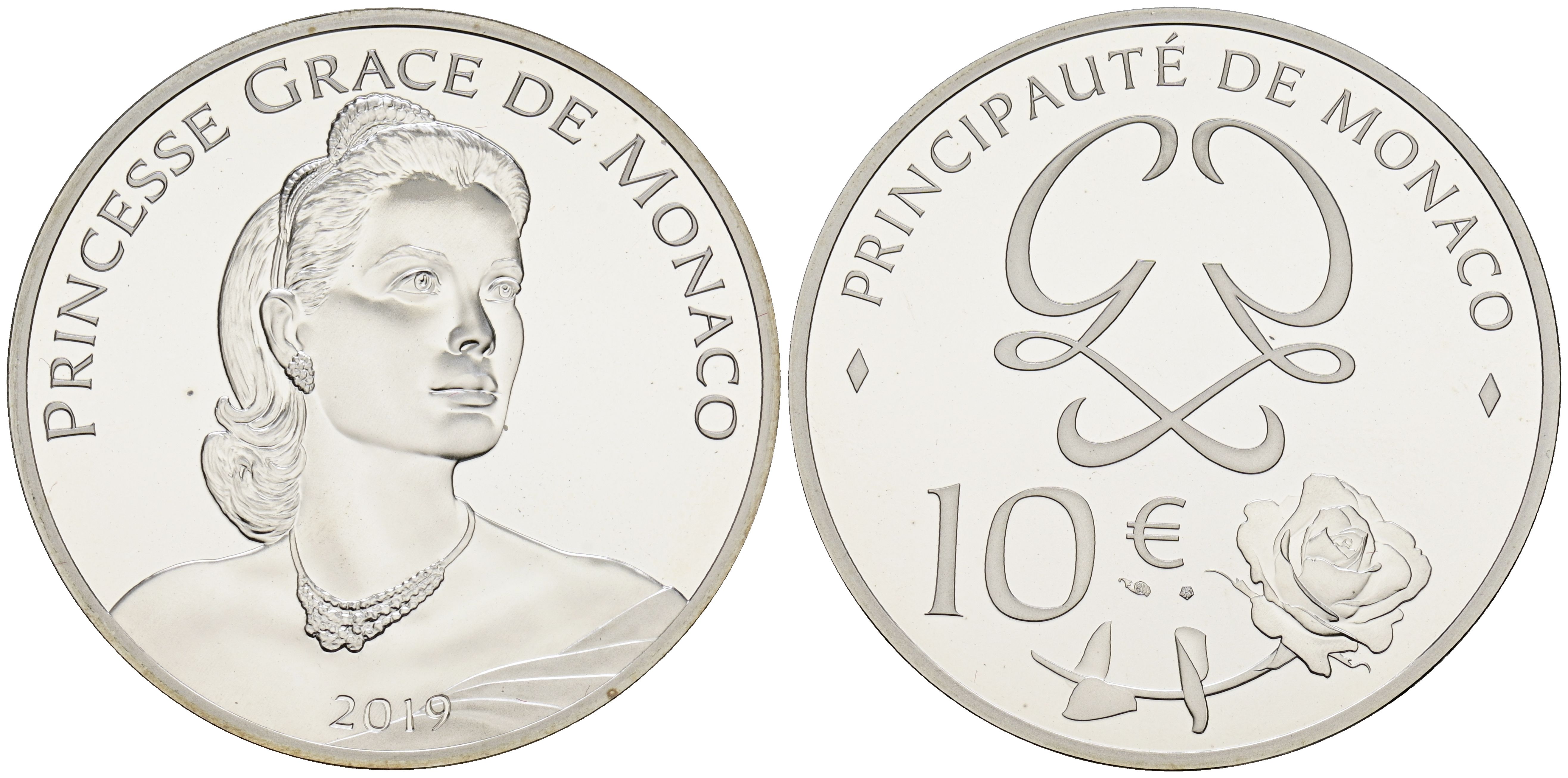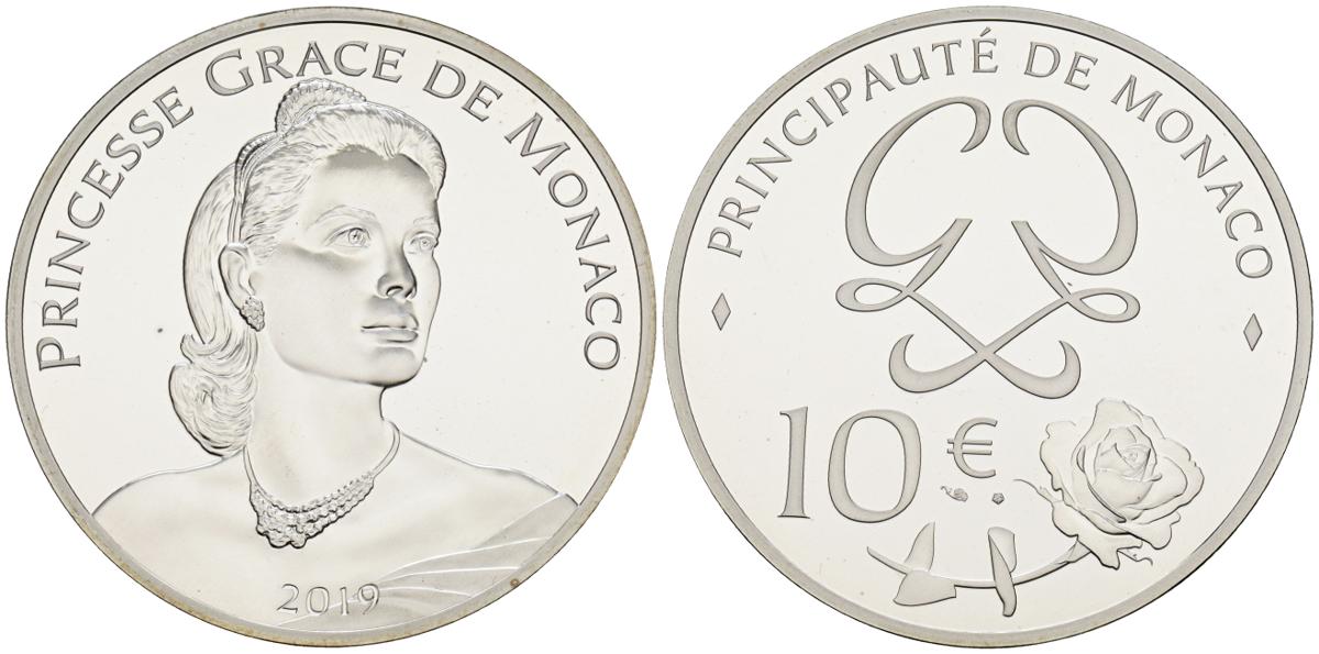 MÓNACO. 10 Euro (Ar. 25,00g/37mm). 2019. Princesa Grace de Mónaco. Calidad: BE (Belle Epreuve). En estuche original y con certificado de autenticidad. Escasa. Visagra del estuche rota.