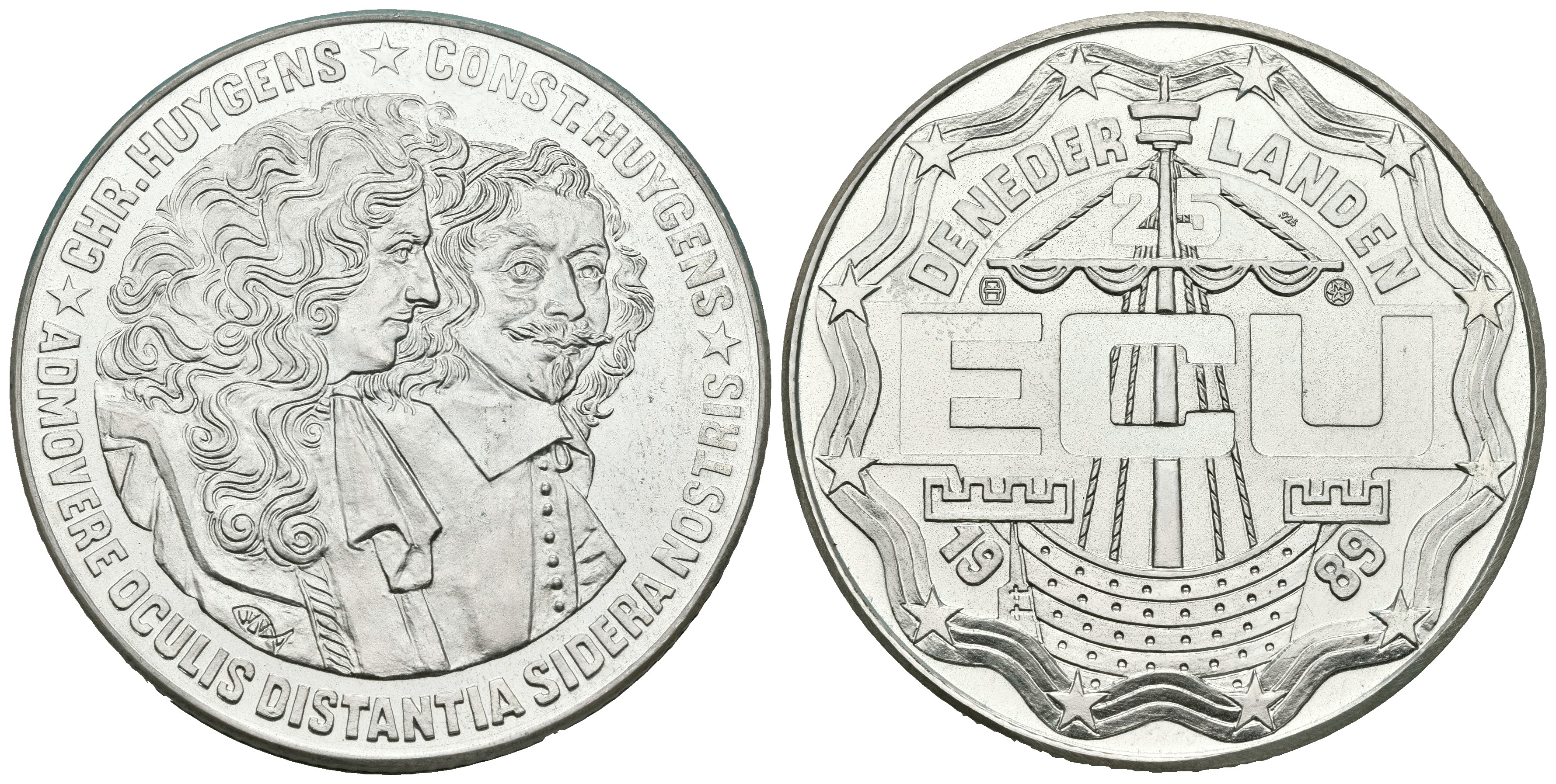 HOLANDA. 25 Ecu. 1989. CONSTANTIJN Y CHRISTIAAN HUYGENS. Ar. 25,01g. PROOF.