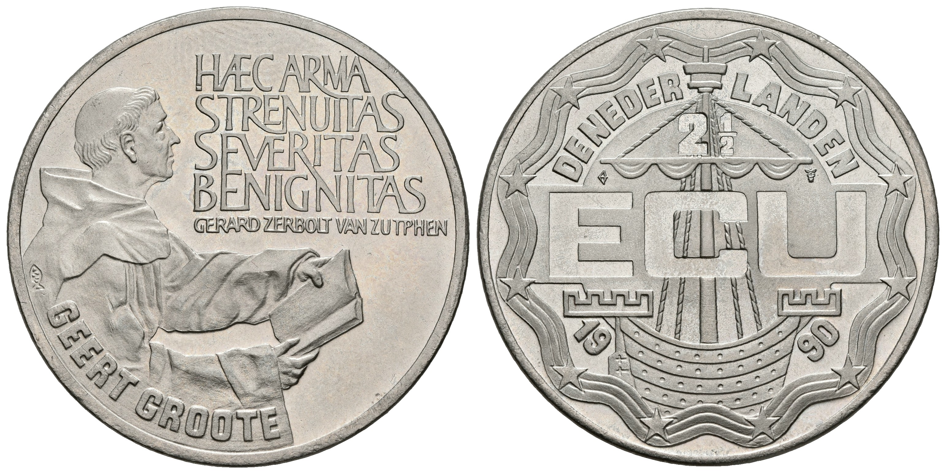 HOLANDA. 2 1/2 Ecu. 1990. GROOTE. CuNi. 14,74g. SC.