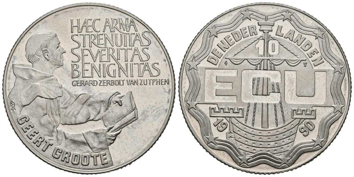HOLANDA. 10 Ecu. 1990. GROOTE. CuNi. 21,85g. SC.