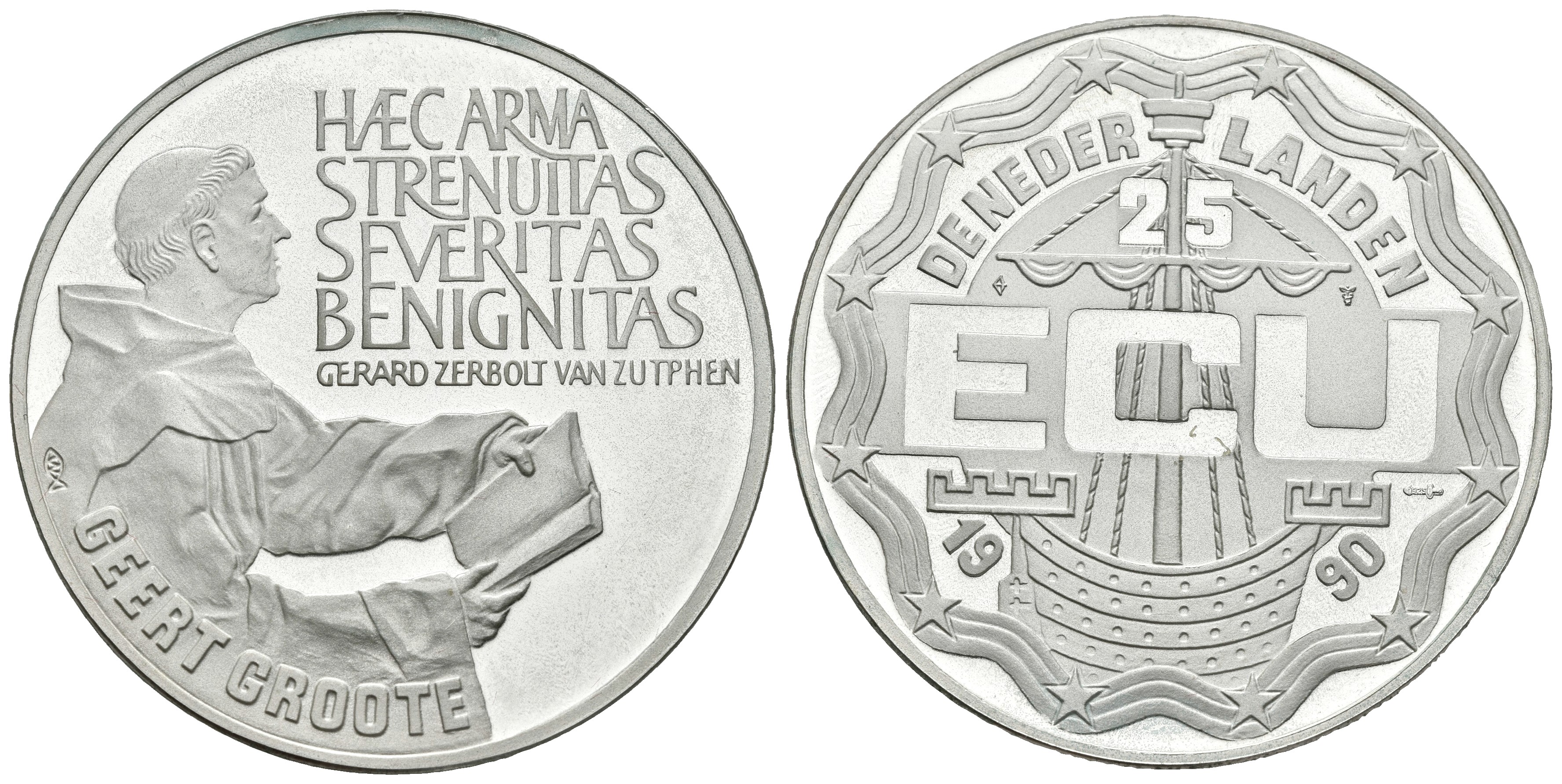 HOLANDA. 25 Ecu. 1990. GROOTE. Ar. 25,01g. Tono verde. SC.