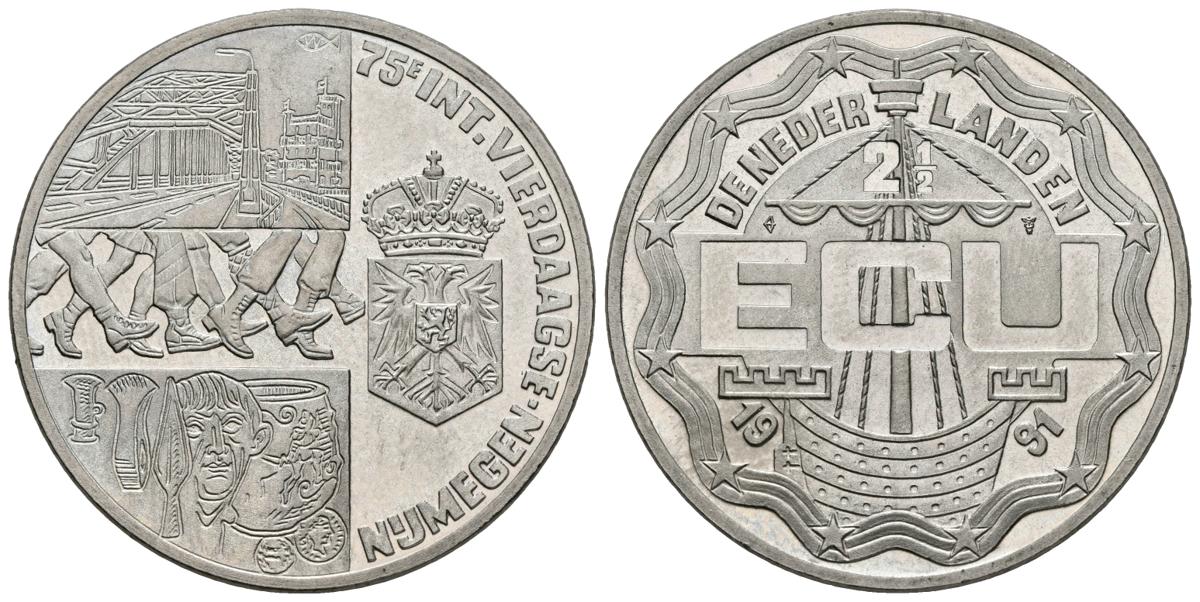 HOLANDA. 2 1/2 Ecu. 1991. 75º MARCHA DE LOS CUATRO DIAS DE NIMEGA. CuNi. 15,80g. SC.