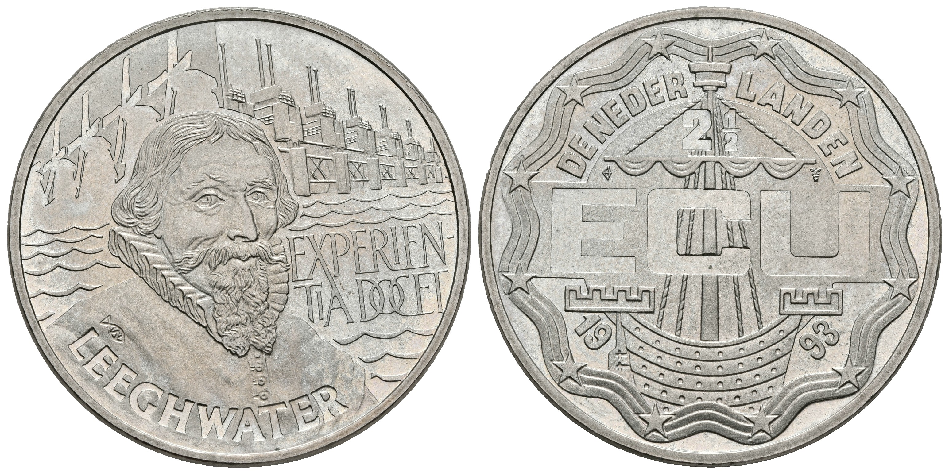 HOLANDA. 2 1/2 Ecu. 1993. LEEGHWATER. CuNi. 15,42g. SC.
