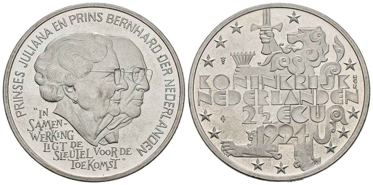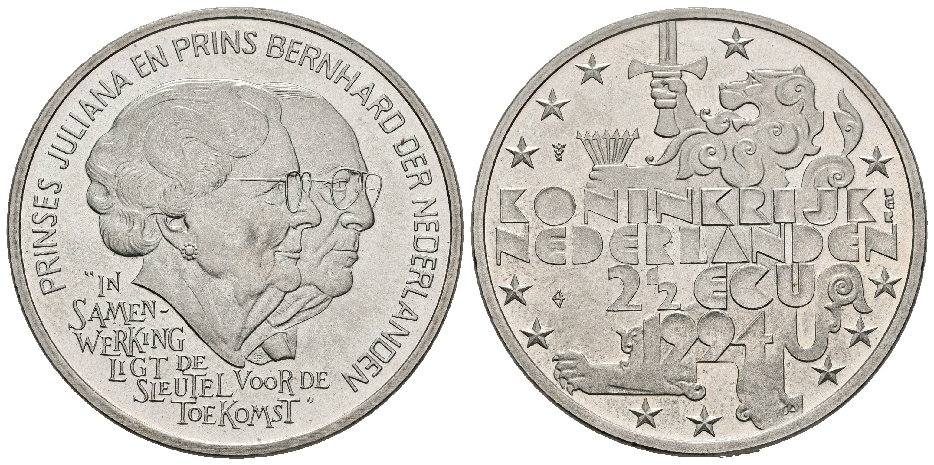 HOLANDA. 2 1/2 Ecu. 1994. 85º ANIVERSARIO DEL NACIMIENTO DE LA REINA MADRE. CuNi. 15,40g. SC.