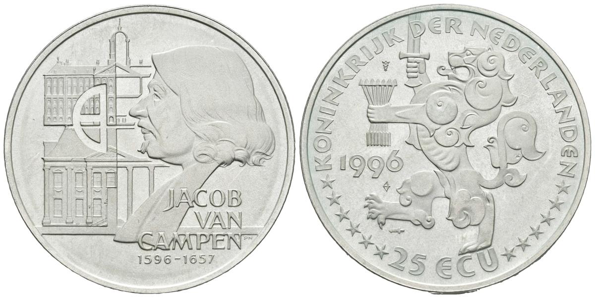 HOLANDA. 25 Ecu. 1996. JACOB VAN CAMPEN. Ar. 24,91g. PROOF.