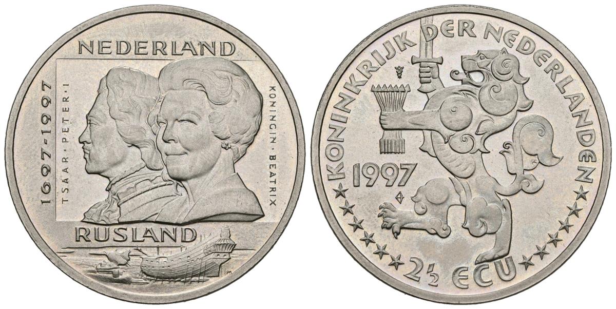 HOLANDA. 2 1/2 Ecu. 1997. 300º ANIVERSARIO DEL CONTACTO DIPLOM›TICO CON RUSIA. CuNi. 15,38g. SC.
