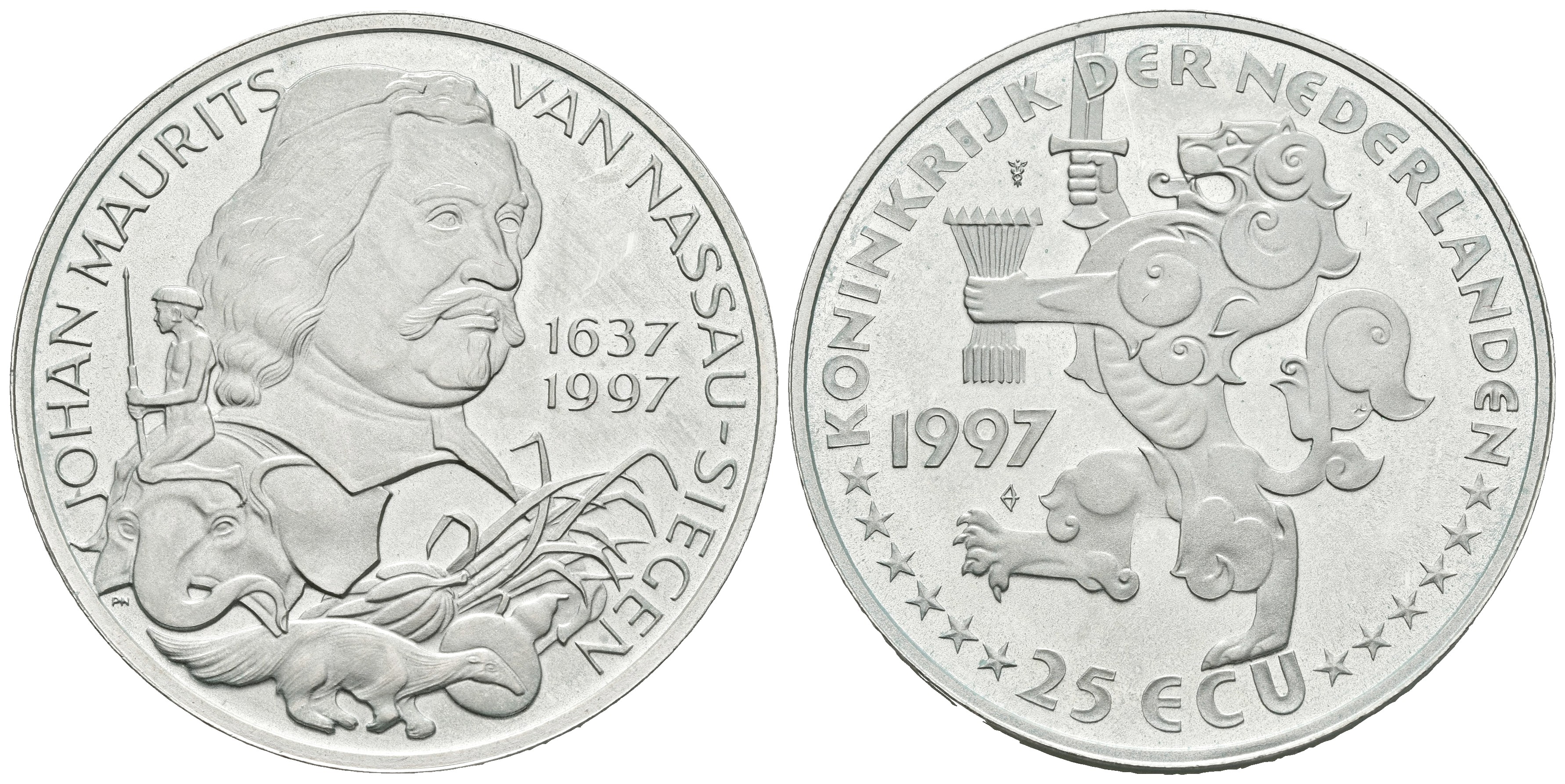 HOLANDA. 25 Ecu. 1997. JOHAN MAURITS VAN NASSAU-SIEGEN. Ar. 25,08g. PROOF.