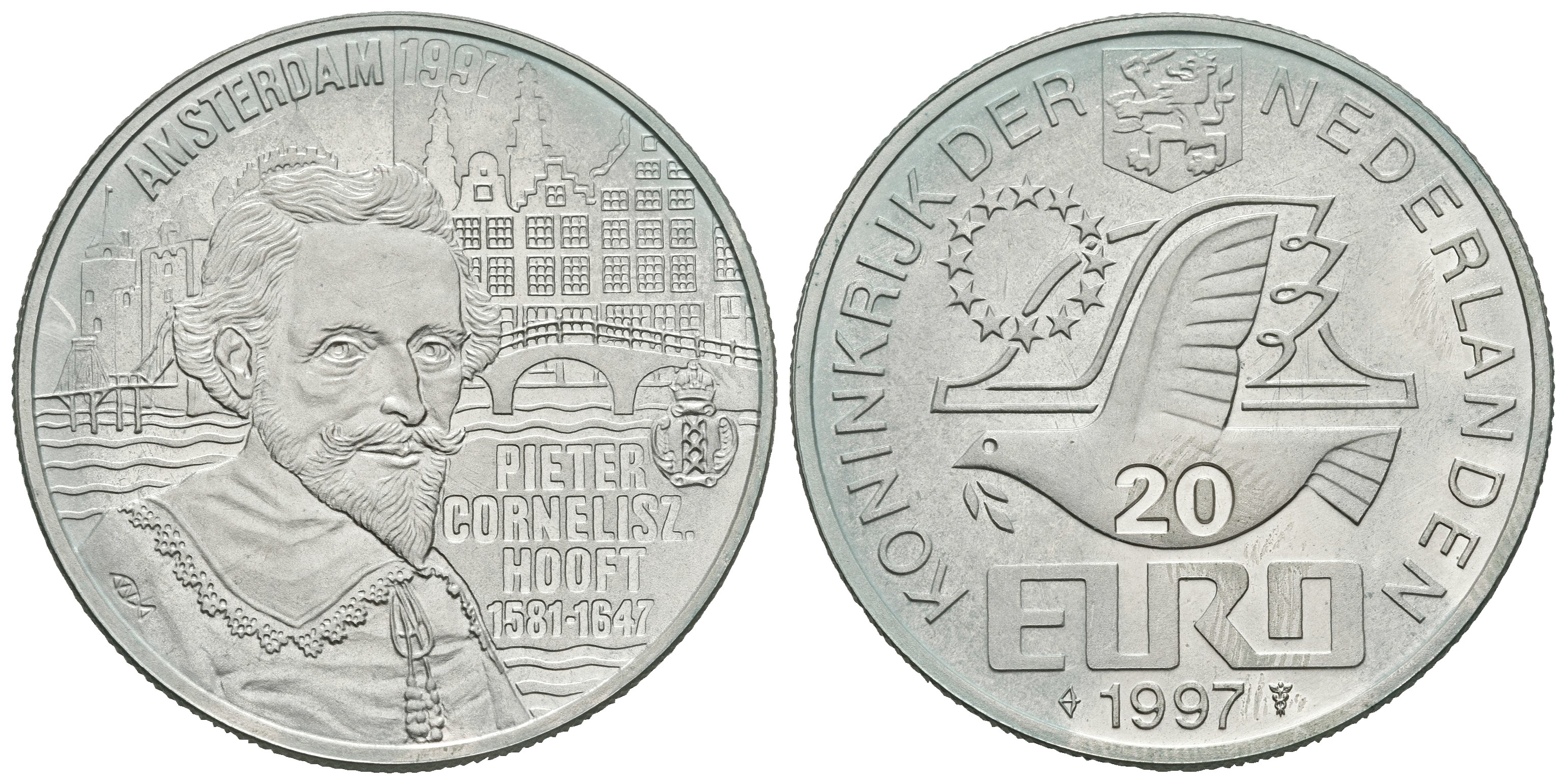 HOLANDA. 20 Euro. 1997. P. C. HOOFT. Ar. 15,01g. PROOF.